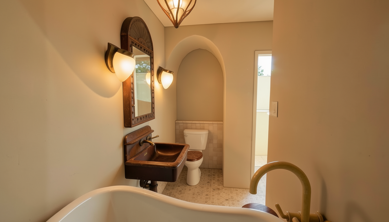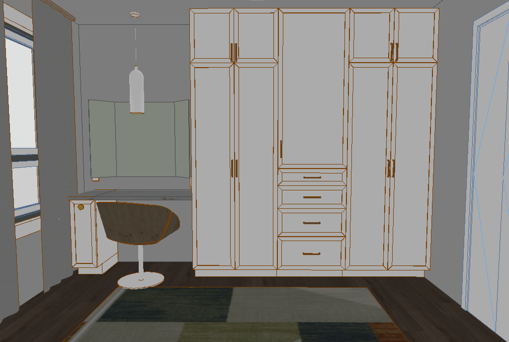 luxury primary closet dressing room symmetrical front elevation view serene spa inspired atmosphere magazine quality interior photography soft warm natural light neutral monochromatic palette of ivory taupe sand mushroom and warm beige floor to ceiling custom built in wardrobes on both sides with shaker style doors in light washed oak finish foreground upholstered bench with rounded edges in light cream boucle fabric dark wood legs draped knit throw blanket large textured woven area rug in natural wool tone over light oak flooring walls finished in soft limewash or grasscloth texture clean styling clutter free composition refined luxury calm wellness retreat energy camera settings eye level view centered composition 24mm lens ultra sharp focus realistic materials subtle depth of field global illumination soft shadows high dynamic range photorealistic rendering editorial interior design magazine shoot 8k resolution