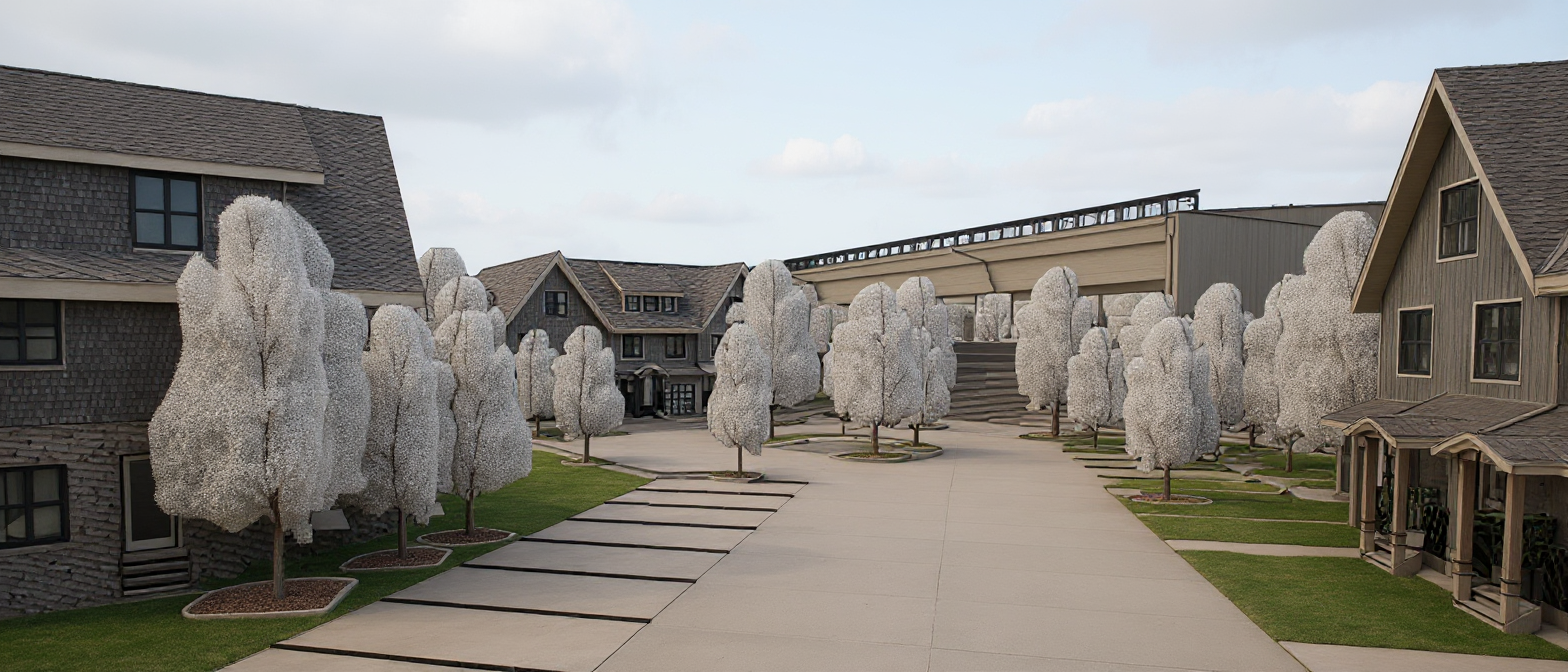 a manicured lawn layered flower beds low maintenance shrubs native plants stone pathway leading to the entrance