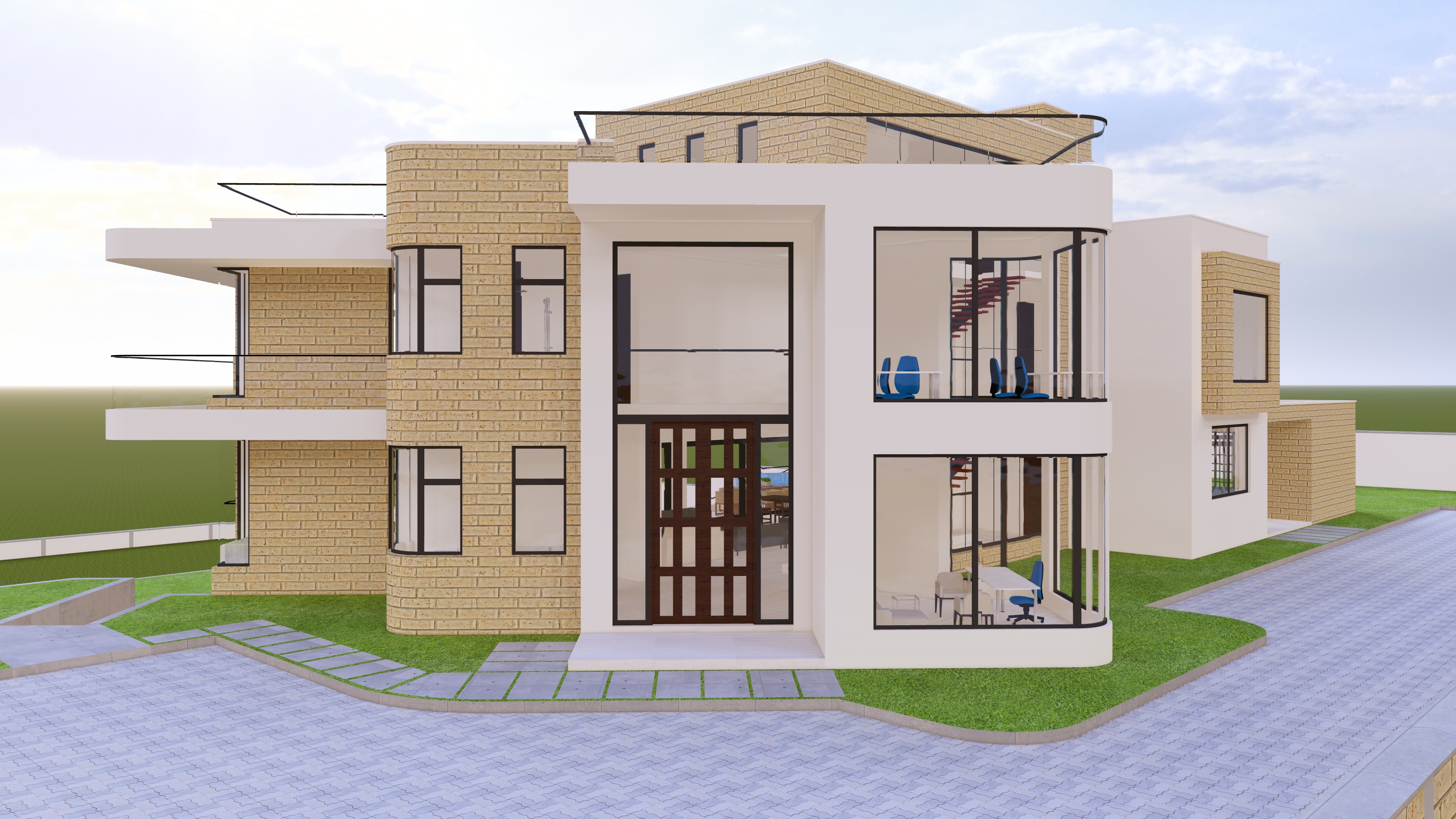 add very few trees and some vegetation in far far background to give this house render context