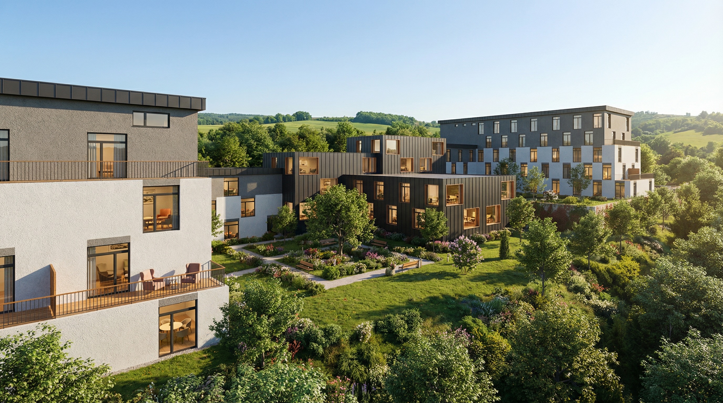 summer midday add interiors light up all dark facades to rheinzinc add alzheimerhome garden