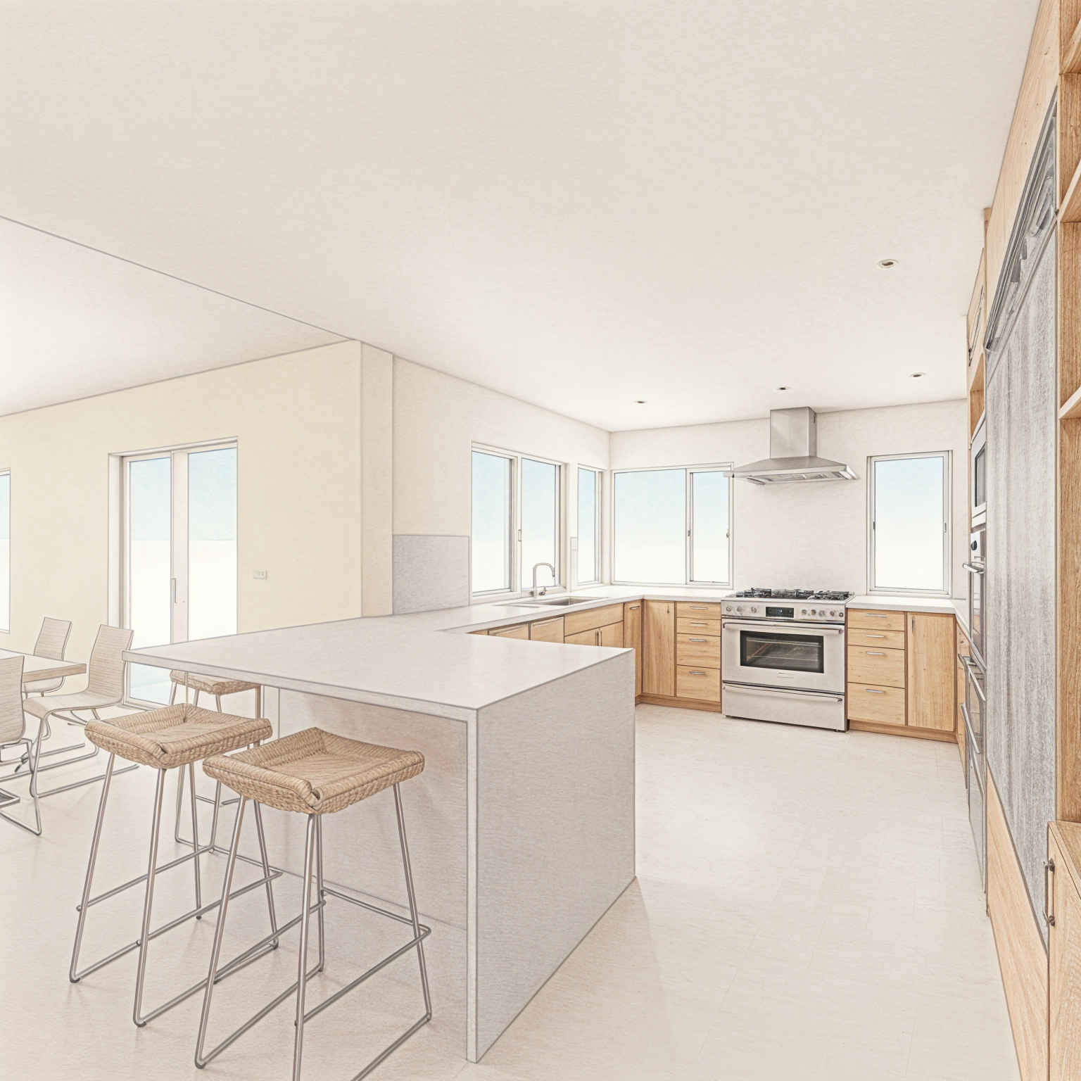 photo realistic render in the australian bush landscape of a modern barn house with stone features