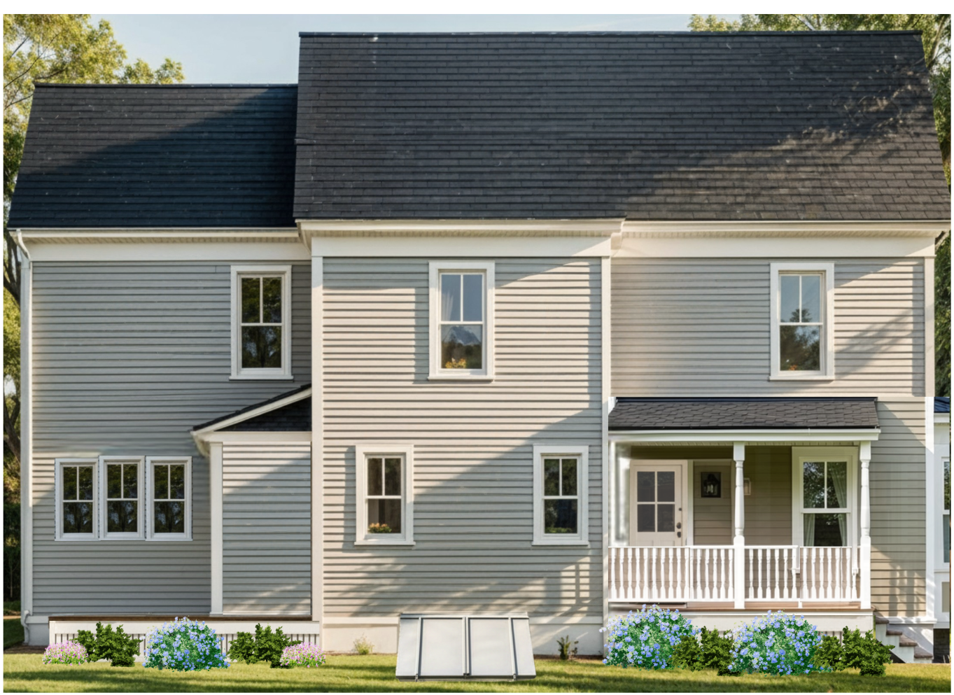 please paint the siding a light tan color with white dove by ben moore trim
