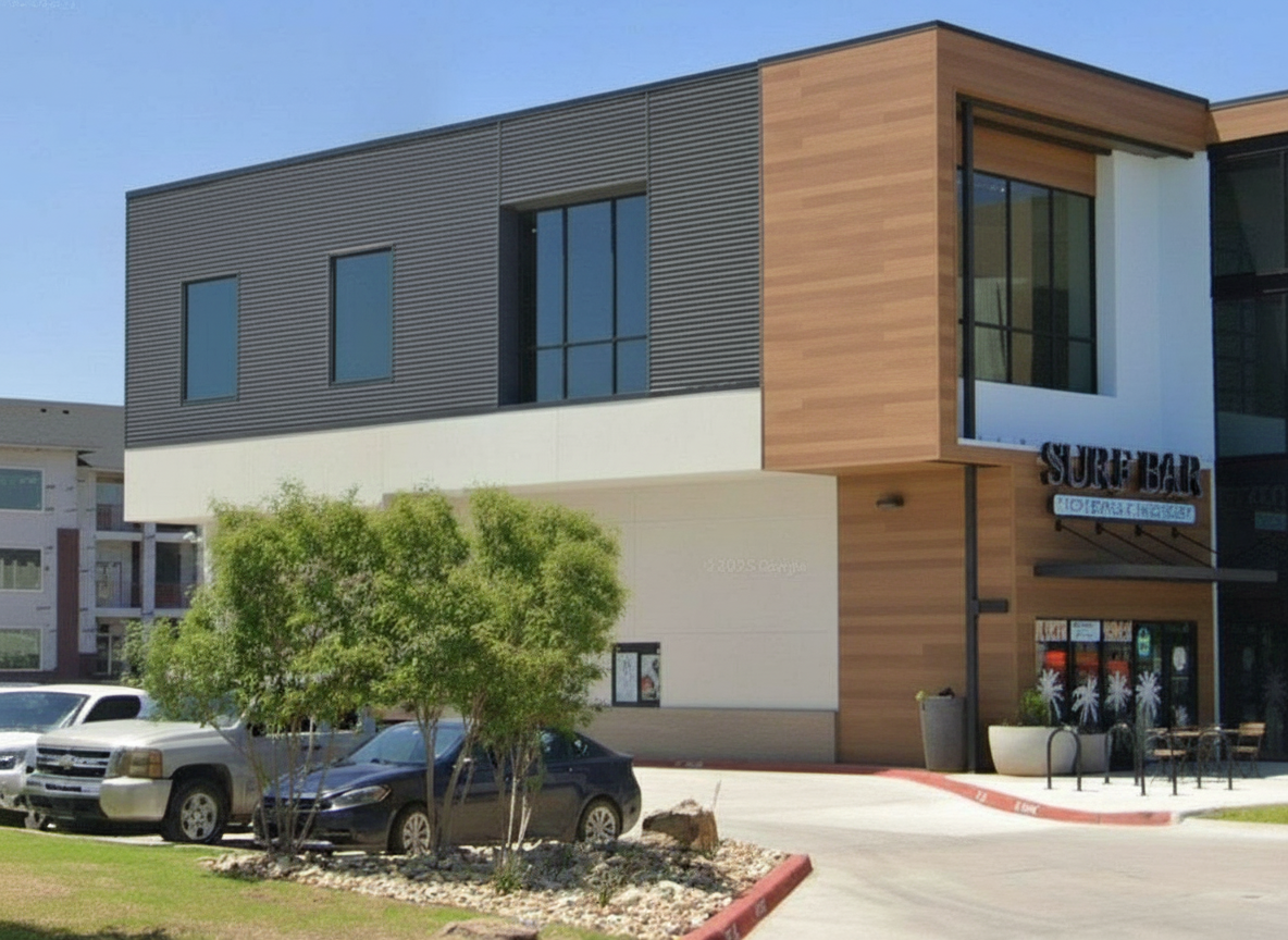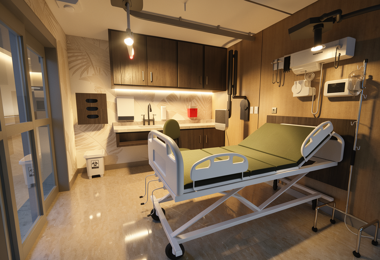 render a hyper realistic modern high end contemporary three story house in florida setting where there are palm trees and the lights are lit up on the outside of the house the window frames are dark gray the front right wall is in dark gray paint on the upper side maintain the window design where there are shutter design on left and right side the garage door is a sleek modern design in matte gray with wide horizontal panels and narrow glass inserts that create a clean contemporary look while letting in controlled natural light the roof is gray metal roof featuring a mix of gray brick white stone featuring large windows the exterior features a horizontal walnut wood panels on the left center where the 3 windows are located and it wraps around on the left atleast 1 foot the finishing around the garage doors are light gray bricks the entrance includes a square arched in dark gray bricks the main door is 6 feet wide made of frosted glass with 4 horizontal mulls the trellis are all in walnut brown the walls are a soft light gray with a smooth finish creating a serene and inviting atmosphere with lots of greeneries and landscape and with dramatic sky