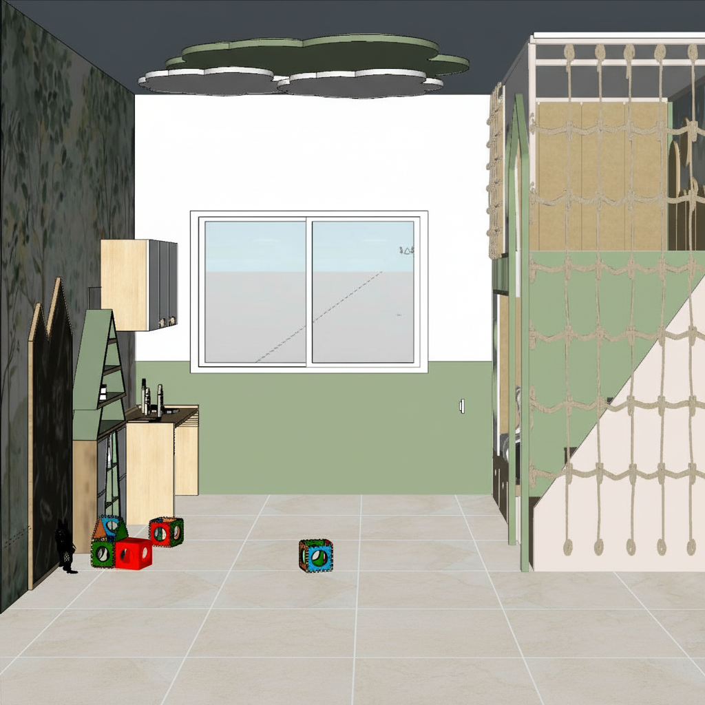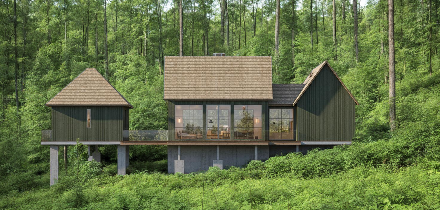 add a board walk leading up to the center glass door of the middle section of the house