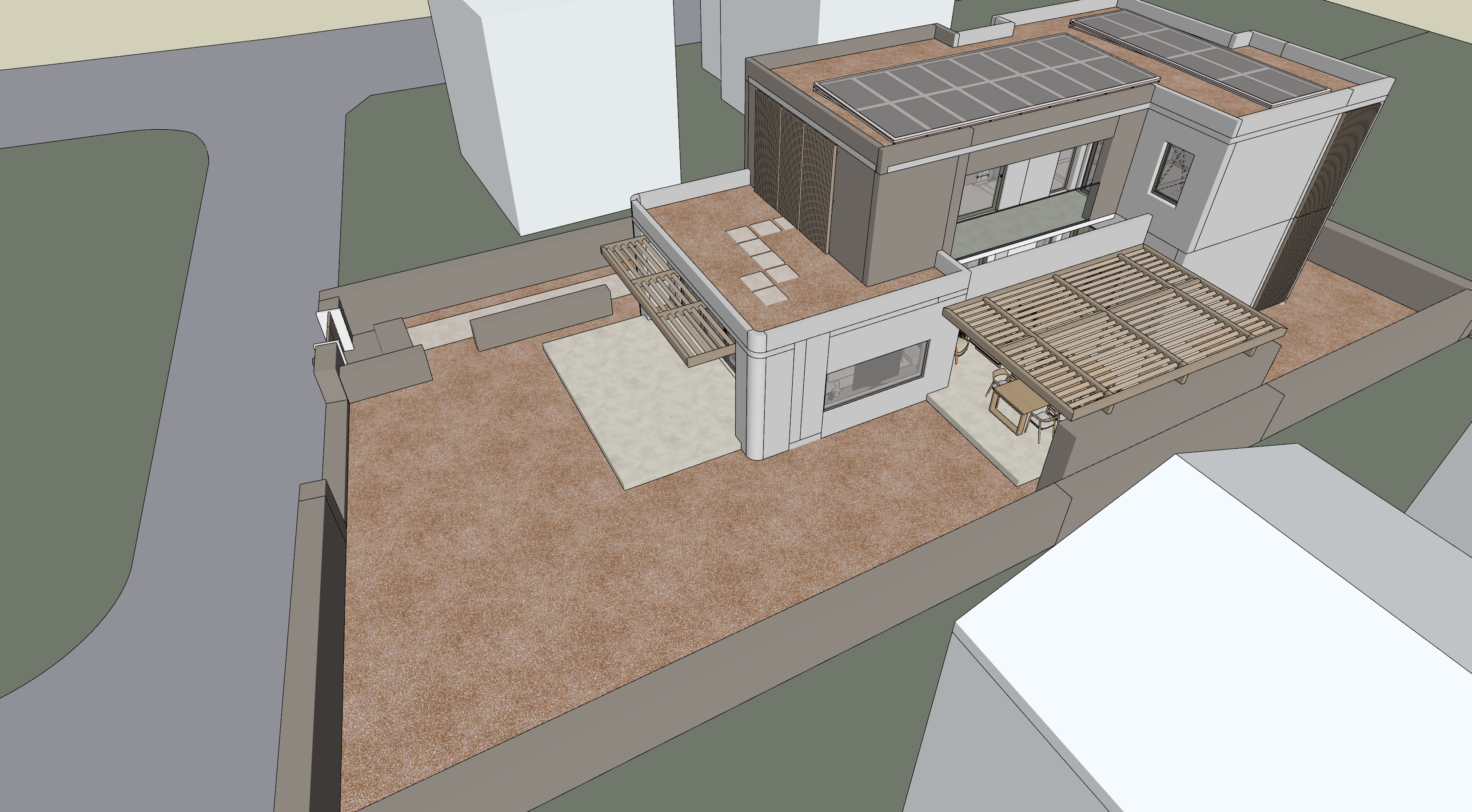 rustic modern mediterranean villa exterior with natural limestone walls and warm white plaster handcrafted textures soft late afternoon sunlight calm bohemian atmosphere subtle greenery with mediterranean plants and grasses natural wooden pergolas cozy outdoor dining area cinematic depth of field realistic lens lighting warm tone color grading photorealistic render 4k serene and tactile aesthetic