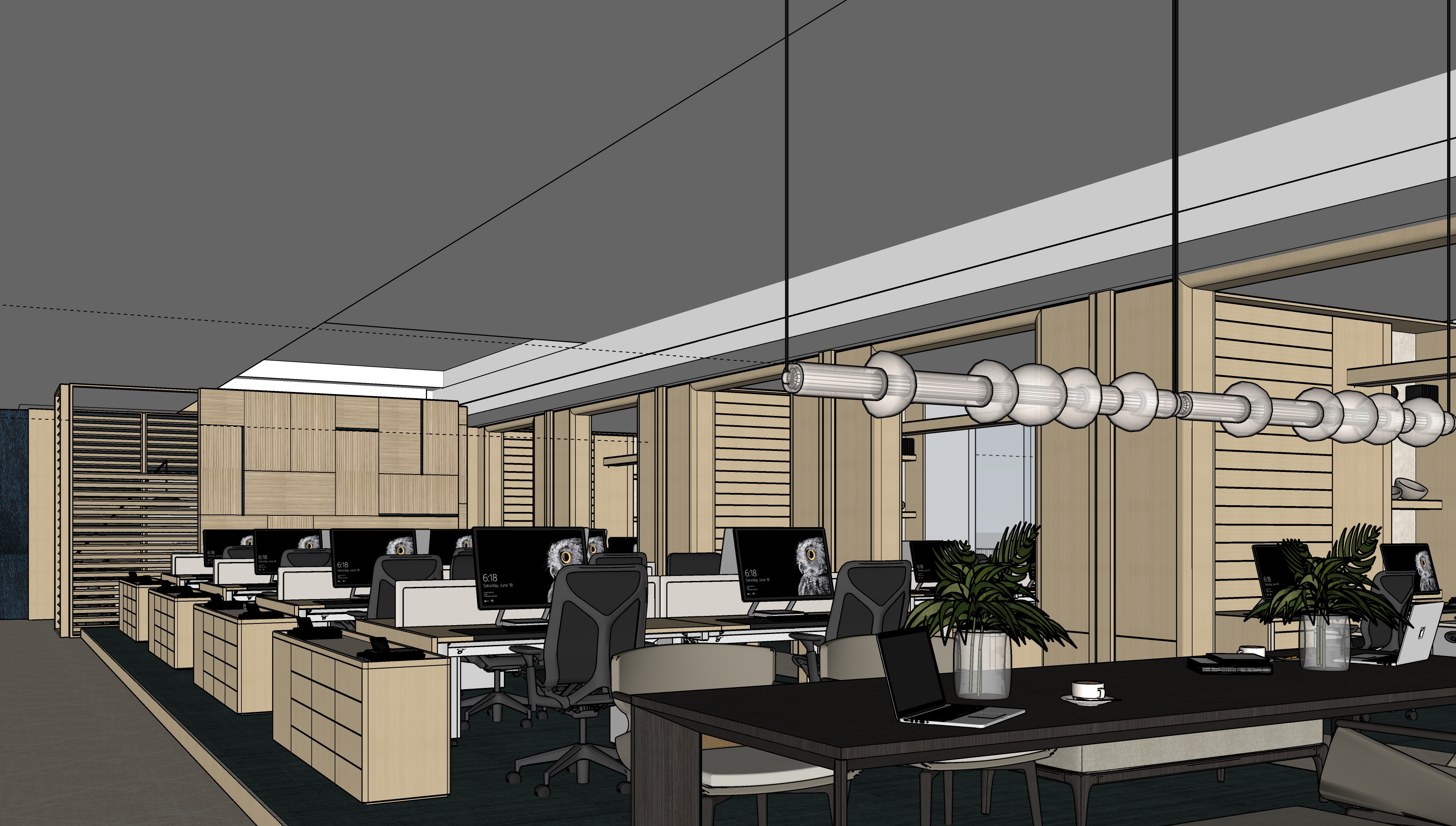 maintain all the materials and colours and tones only change the dining table to a light wood colour the pendant lighting emit a soft low add cove lighting the the both side of the recessed ceiling soft natural lighting illuminating from the window side into the space
