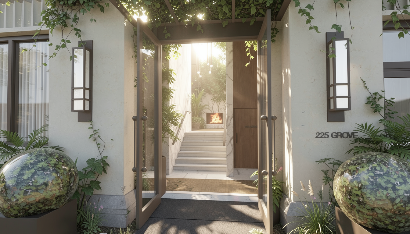 make the image look like a professional photograph in terms of lighting colors and contrast with maximum realism use existing textures materials and colors throughout make a realistic stone cladding on the top of the fireplace and keep the original white lime plaster on the bottom use the details textures and colors from the photo do not change the architecture colors and materials of the interior do not change anything like interior details do not change the stone slabs on the floor make the curtains realistic make the two chandeliers above the dining table look realistic based on the original model from the image which is the large heracleum iii chandelier hanging in white make them glow make the spotlights on the ceiling glow enhance the panorama behind the windows with a more realistic one by adding low green hills typical of tuscany in the distance behind the windows with cypresses and lots of greenery all walls and ceilings should be in the same color and texture namely in a warm white lime plaster do not change the colors and materials of the entire interior keep the existing colors and textures keep the colors of the walls do not add additional lighting fixtures other than those that already exist in the image make the image in 4k