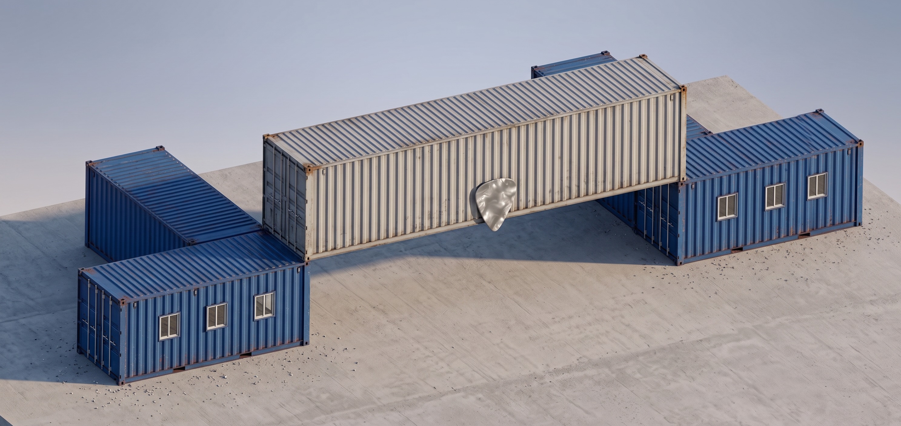 concert venue entrance black shipping containers guitar pick sign that says country boom accent lighting