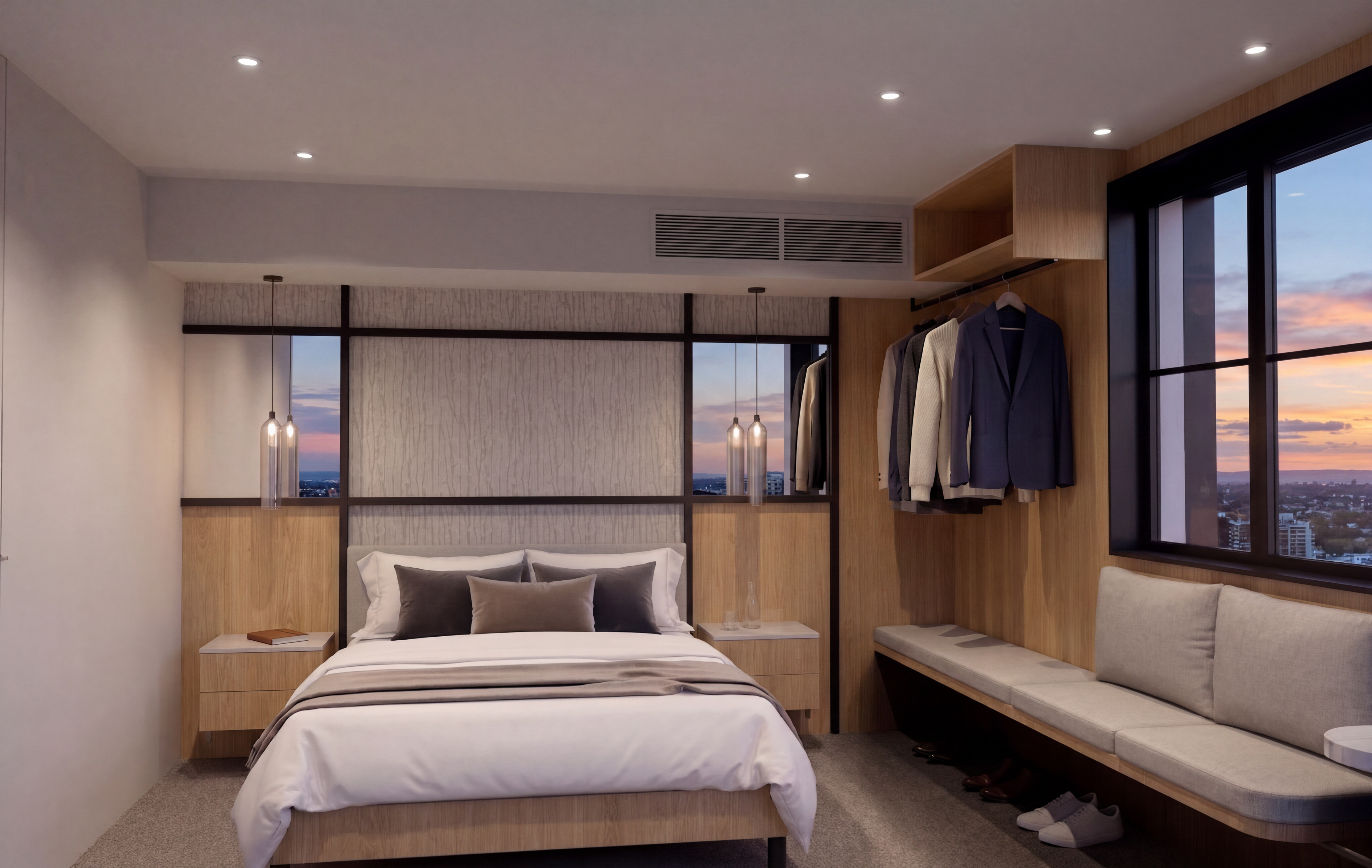 create a highly photorealistic rendering of kindergarden based strictly on the provided architectural image the architecture must remain completely unchanged preserve all proportions geometry facade design materials colors window placements and roof shape exactly as given do not reinterpret or redesign any architectural elements the goal is a realistic real world photo look not a stylized render lighting and atmosphere use natural daylight with soft shadows ensure physically correct lighting reflections and shadows avoid exaggerated contrast saturation or dramatic effects materials render all materials with high realism such as plaster wood glass roof tiles and metal include subtle natural imperfections and texture variation keep surfaces clean but not artificial garden and surroundings design the garden like a typical kindergarden include a well maintained lawn restrained planting and realistic layout ensure no plants are placed directly against the facade keep a realistic distance vegetation use typical plants such as small shrubs ornamental grasses hedges or boxwood keep planting structured not too dense and not decorative in an artificial way avoid exotic or oversized plants outdoor furniture add subtle and realistic garden furniture that fits a kindergarden also include a swing and a climbing frame for small children do not overcrowd the scene details add small realistic imperfections for authenticity include elements like a simple pathway driveway or terrace if appropriate keep everything coherent and believable camera and composition use a perspective similar to professional architectural photography eye level or slightly elevated viewpoint natural depth of field sharp details no distortion important constraint do not change the architecture in any way only improve realism lighting materials and environment