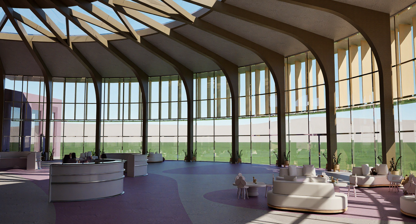 add cove light at mid square ceiling and additional decoration at the shelves at left side