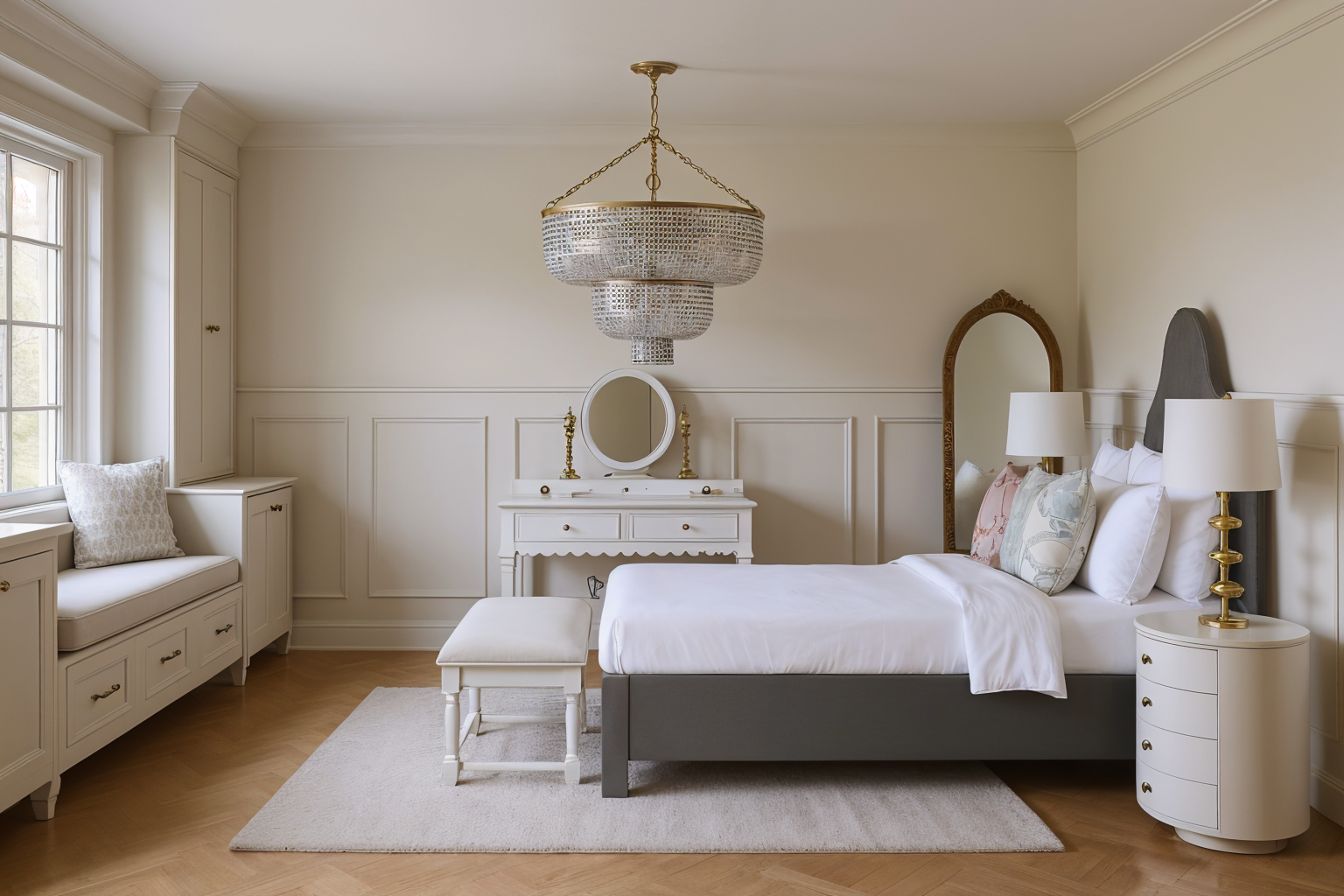 make vanity white remove feet on window bench chandelier is made out of pearls make bed frame grey blue felt