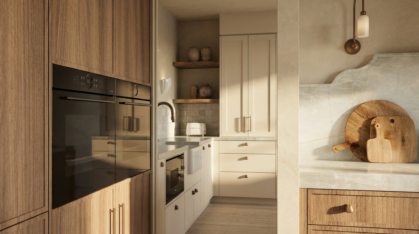 model of a house add few trees to background for context add few vegetation with very very few floral ones for context should look lived in