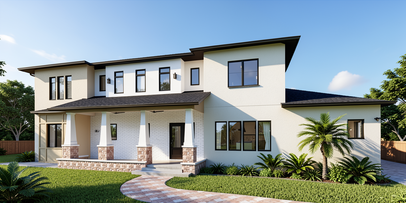 change nothing about this image except the walkway pvaers to something more realistic and the rusticated base of the columns should be white stone