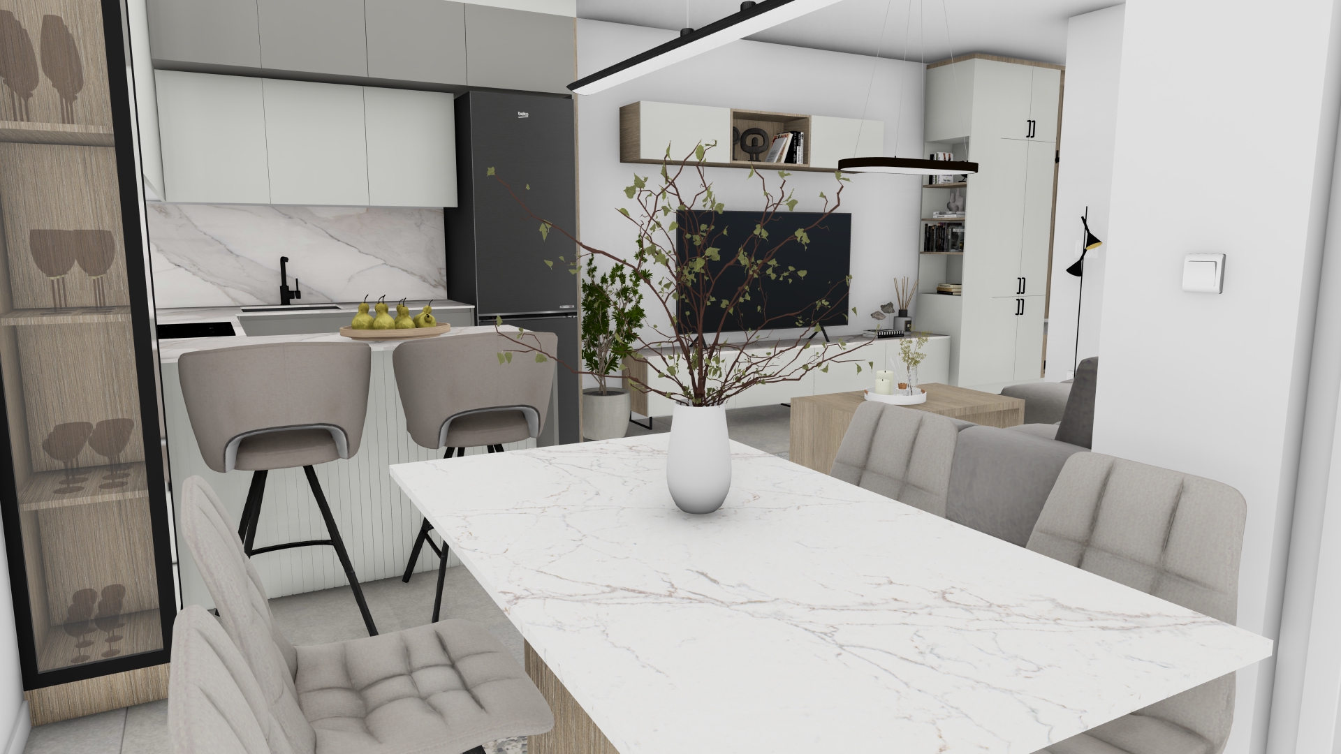make photo realistic with natural day light keep colors textures materials natural light come only from camera corner