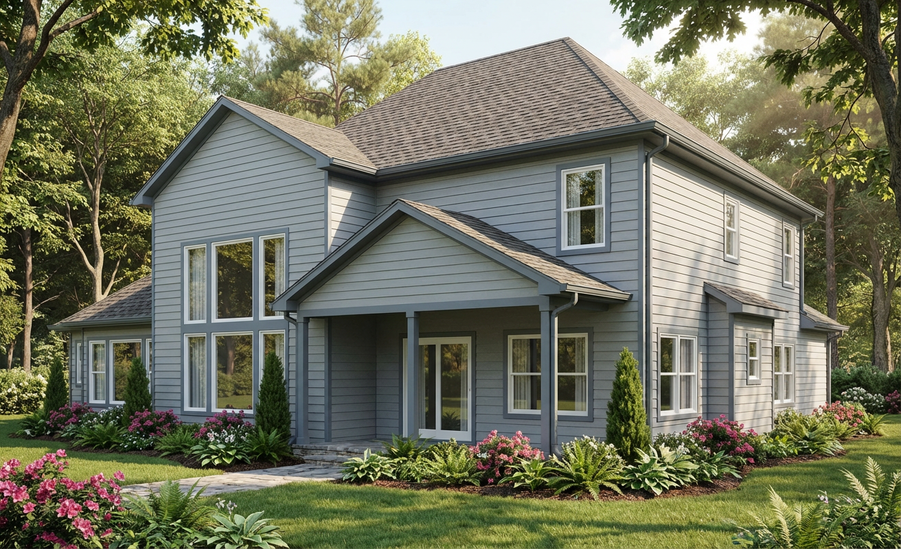 gray siding add landscaping