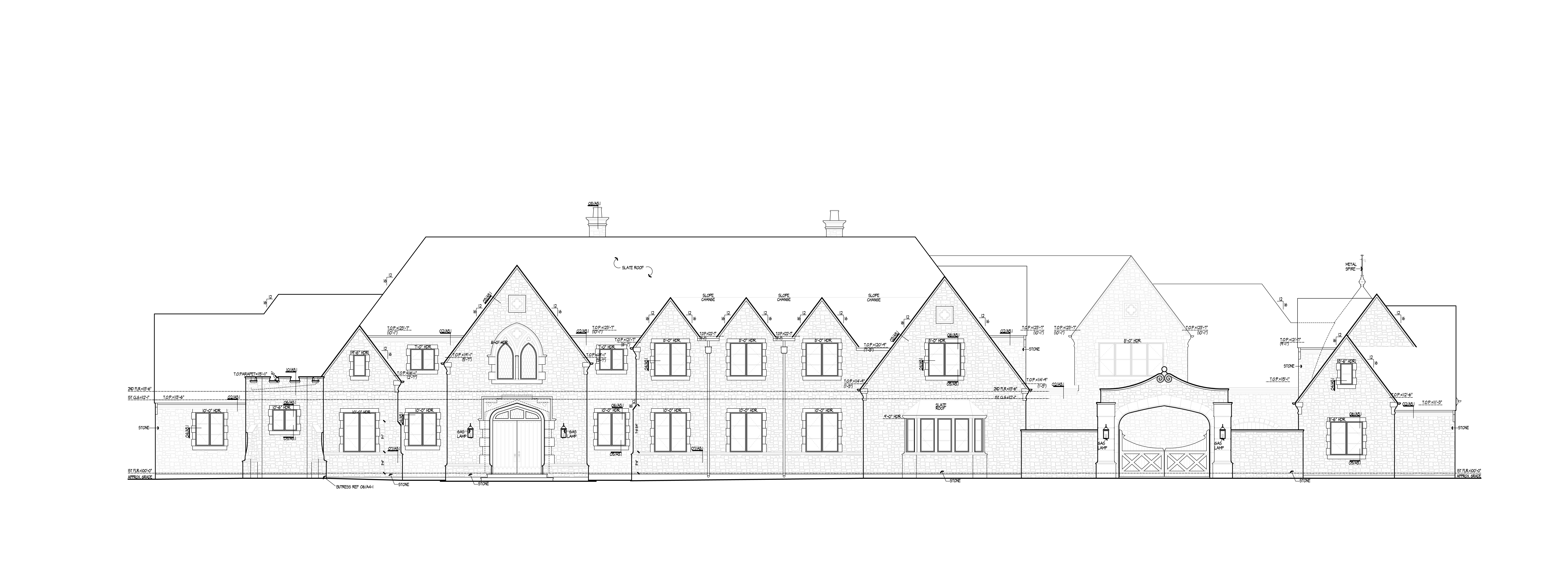tudor mansion needs bridge over stream and pond in front ad landscape and trees