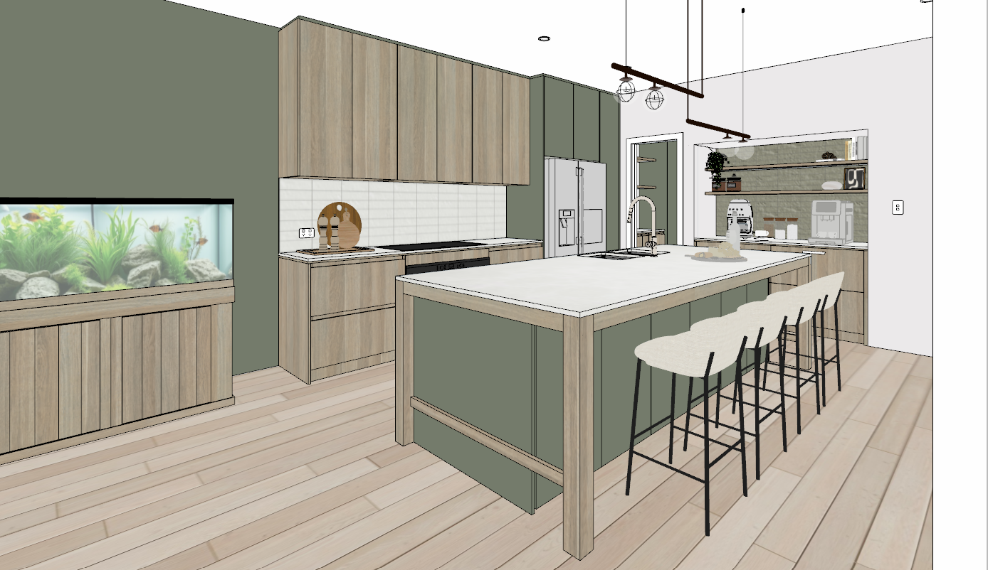convert to high resolution render and make it realistic tiles at the back of the coffee knock are light green remove appliance on the right