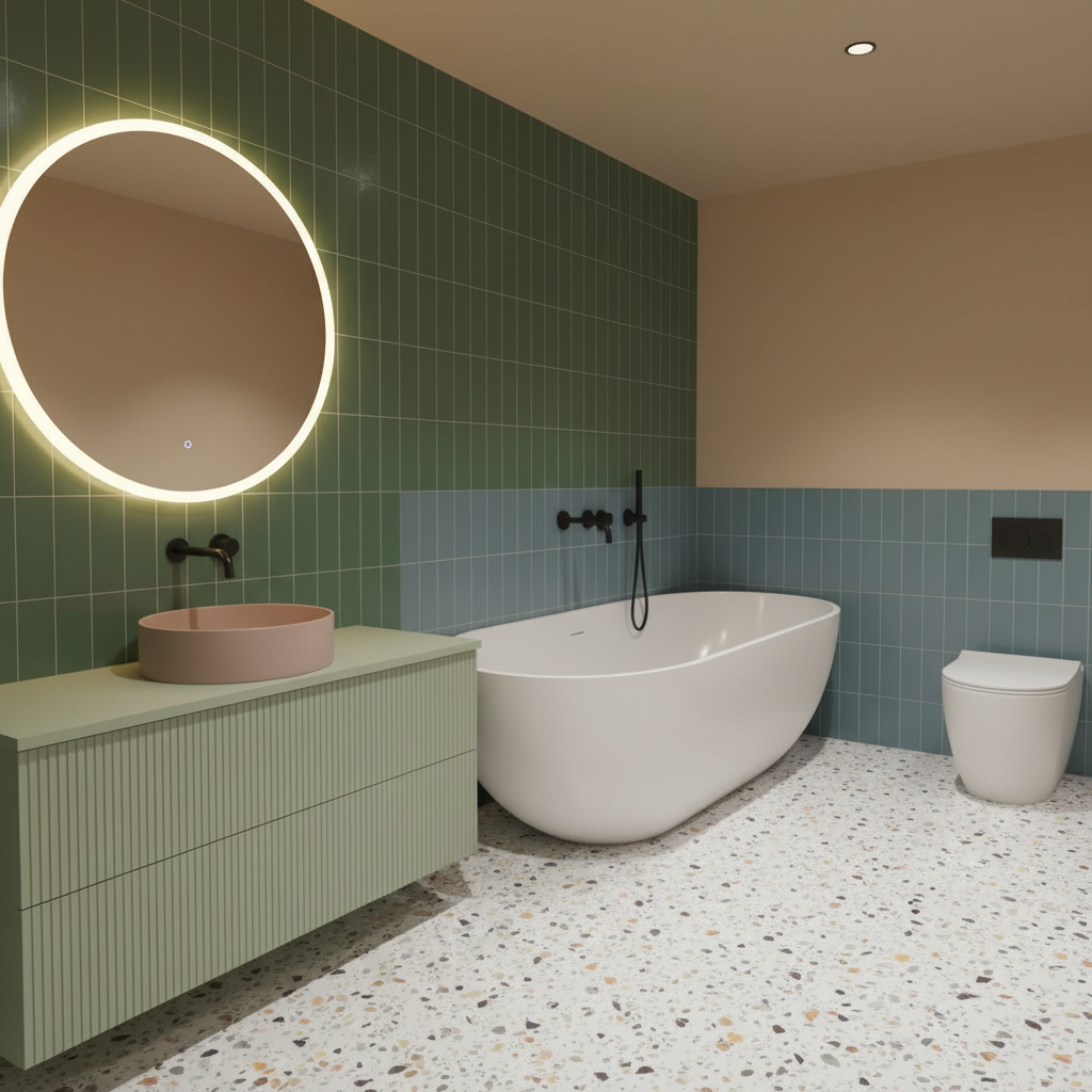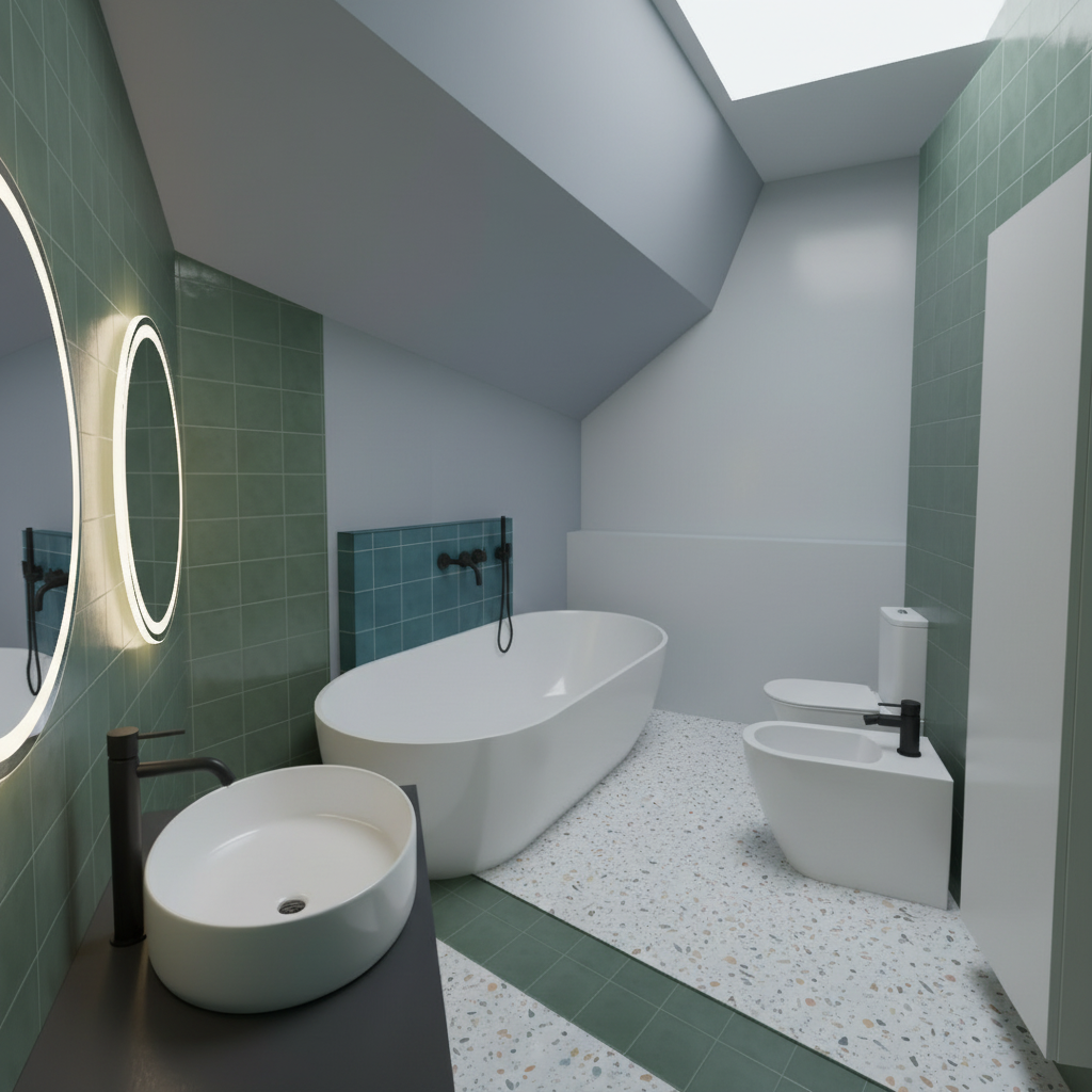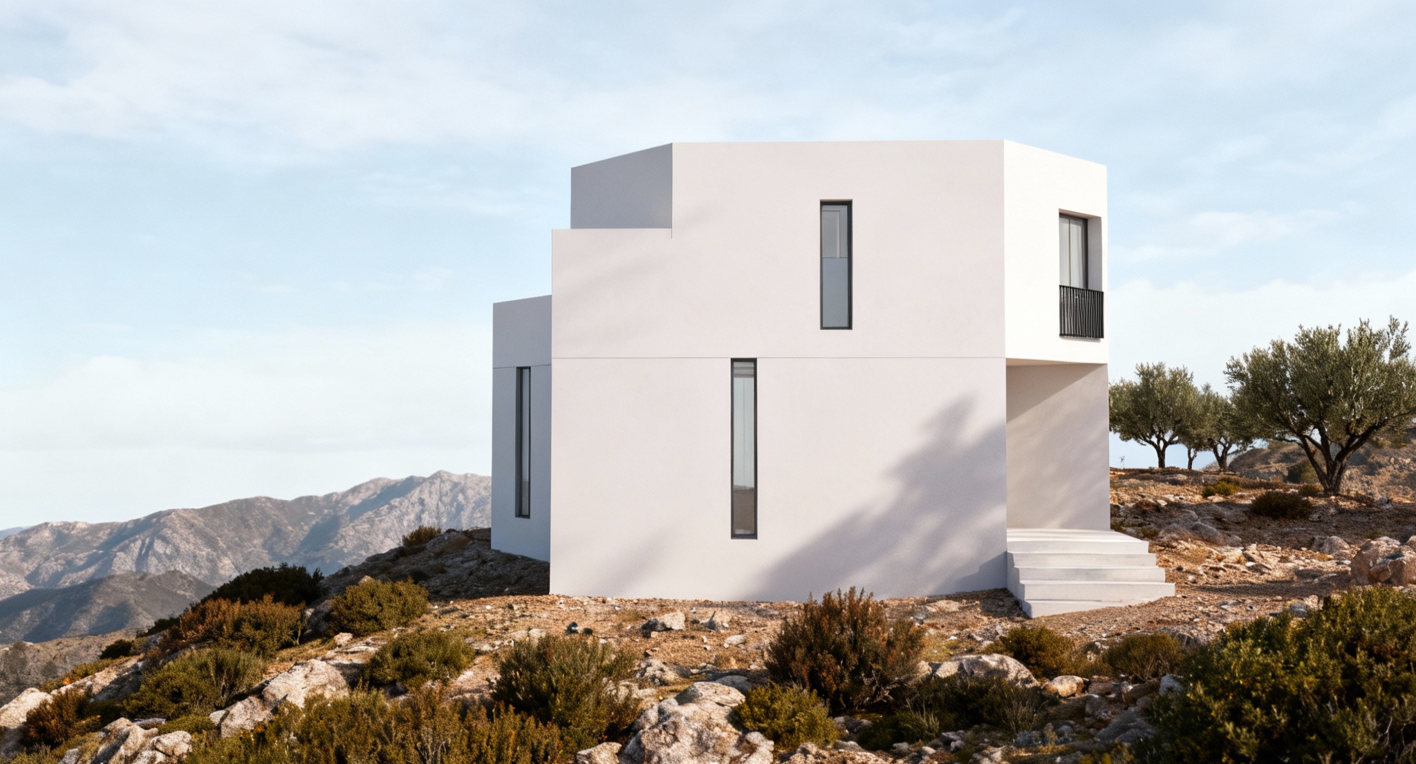 p eve koncept z obr zku do fotorealistick ho pohledu vykresli 2 obytn budovy s plochou st echou v designu sv tle ed f lie s atikami v antracitov m oplechov n jde o 2 domy ka d se t emi byty ka d byt s vlastn terasou a pergolou d ev n pergoly v barv p rodn ho sv tl ho dubu s tuln mi venkovn mi idlemi s b l m pol t em d ev n terasy vykresli z mod nov ch prken ploty kter jsou nyn nazna eny jsou elegantn matn ern prove napojen zpevn n ch ploch na st vaj c komunikace zpevn n plochy chodn ky a parkovac st n vykresli jako zatrav ovac dla dice vykresli realisticky tr vn k zelen plochy mezi nazna en mi ploty dle travnat ch ploch v okol vytvo klidnou atmosf ru s jemn m p irozen m osv tlen m kter napov d o zata en m dni s jemn m v nkem a sv zelenou tr vou obklopuj c sc nu