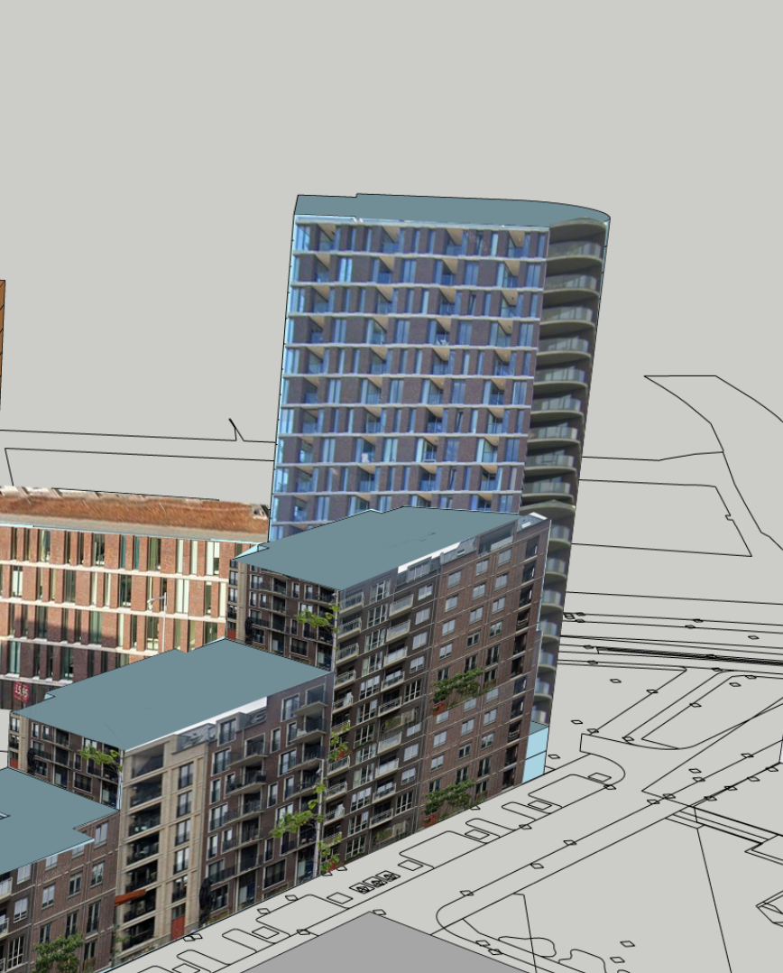 multistorey residential building brick and glass facades