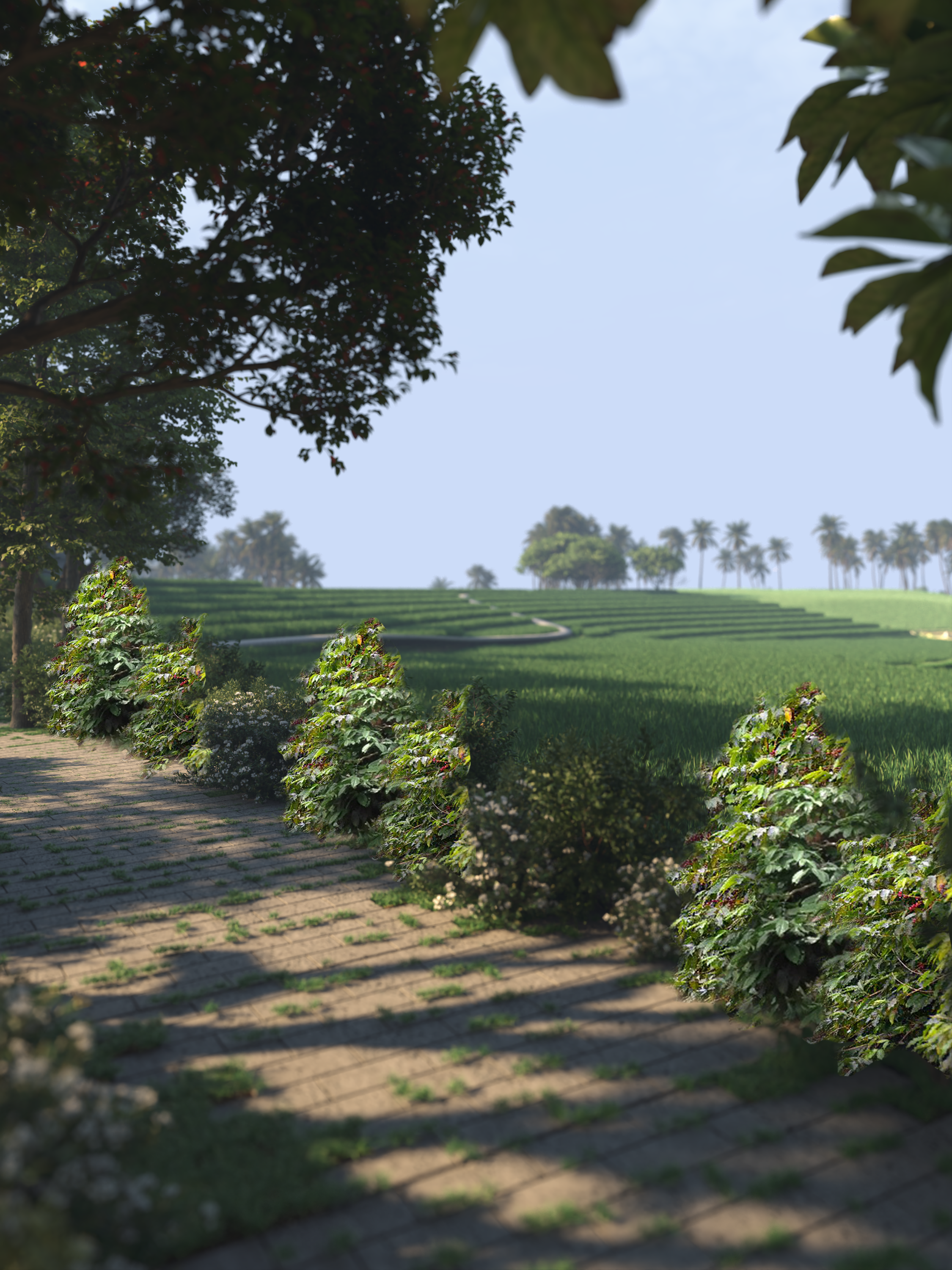 enhance the existing drawing of a coffee plantation keep the original perspective and composition make the plantation look more natural and realistic add lush greenery organic tree arrangements varied sizes of coffee plants natural soil textures soft lighting detailed foliage tropical atmosphere ultra detailed photorealistic but harmonious with the original drawing