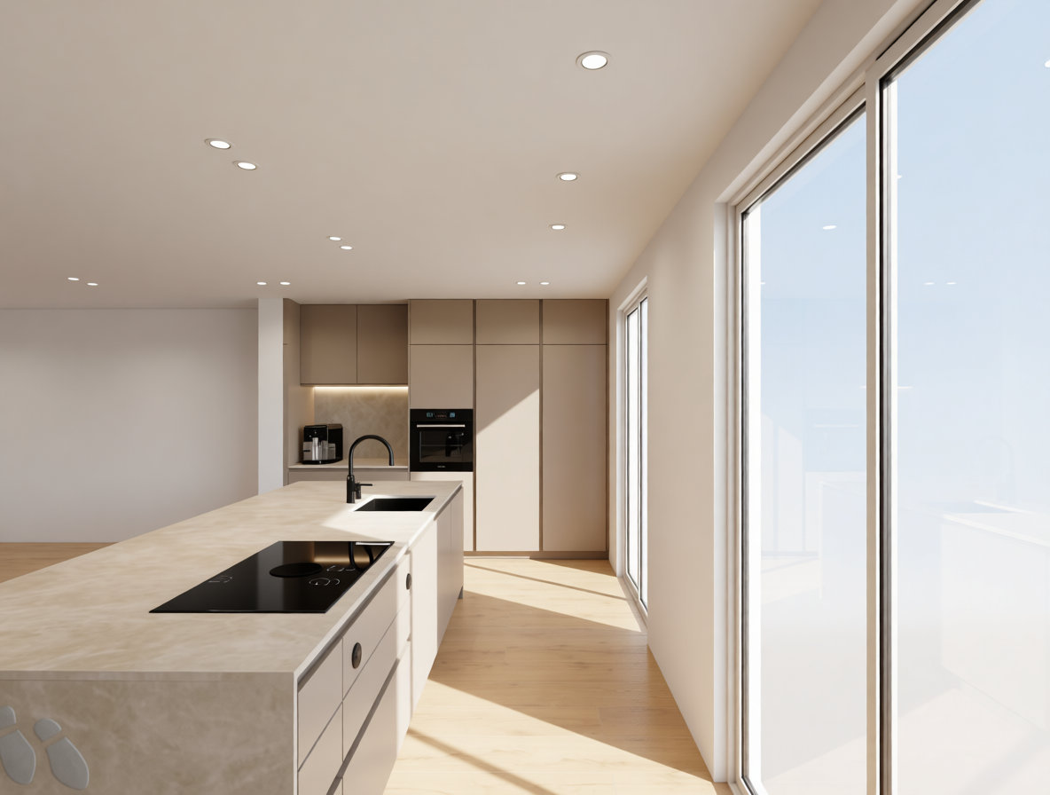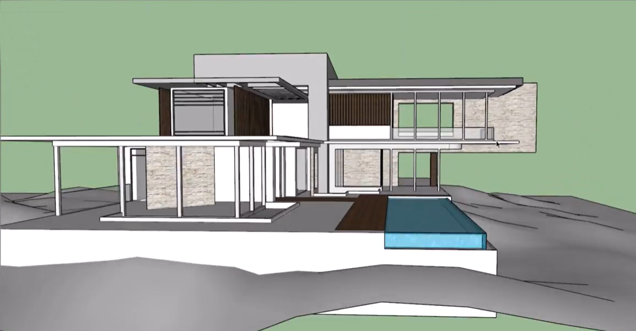 an incredibly lifelike richly detailed photorealistic architectural photo of a modern villa the scene is illuminated by bright direct sunlight under a clear blue sky creating sharp shadows and a warm inviting atmosphere captured with a wide angle lens emphasizing the textured sillar stone construction and the building s stately proportions the surrounding landscape features rolling hills dotted with olive trees and low scrub hinting at a rural or semi rural setting the building itself is a symmetrical fa ade of light colored roughly hewn sillar blocks featuring a central arched entryway that opens to a glimpse of a sun drenched courtyard with olive trees the gravel driveway leading to the entrance lined with cream colored pavers and the low green shrubbery and climbing vines softening the stonework all contribute to the charming timeless aesthetic
