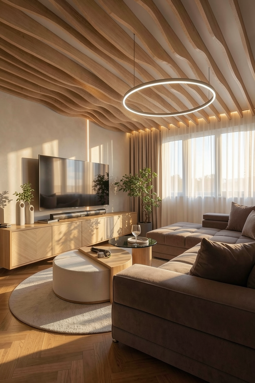 a modern kitchen interior with a minimalist design use soft beige and light cream tones for the walls the ceiling should be in a subtle gray to add contrast include natural wood textures in light oak for the cabinets and shelving the countertops should be a sleek quartz with a gentle brown hue the pendant lights should be slender metallic silver adding elegance the floor is covered with polished marble tiles featuring delicate swirls of gold and white the atmosphere is serene and inviting with ample natural light pouring in from large windows elegant object in the kitchen