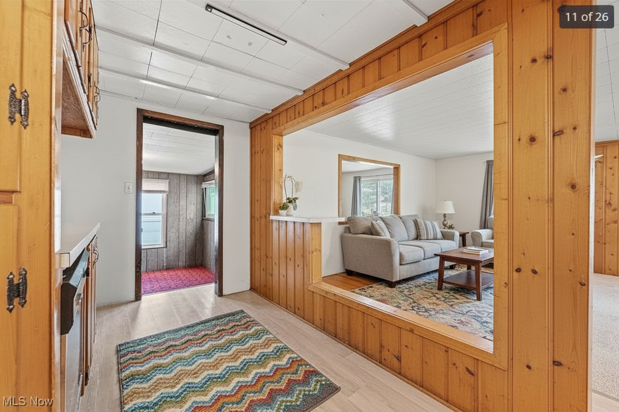 render it the mirror has gold finish border floor tile is light color