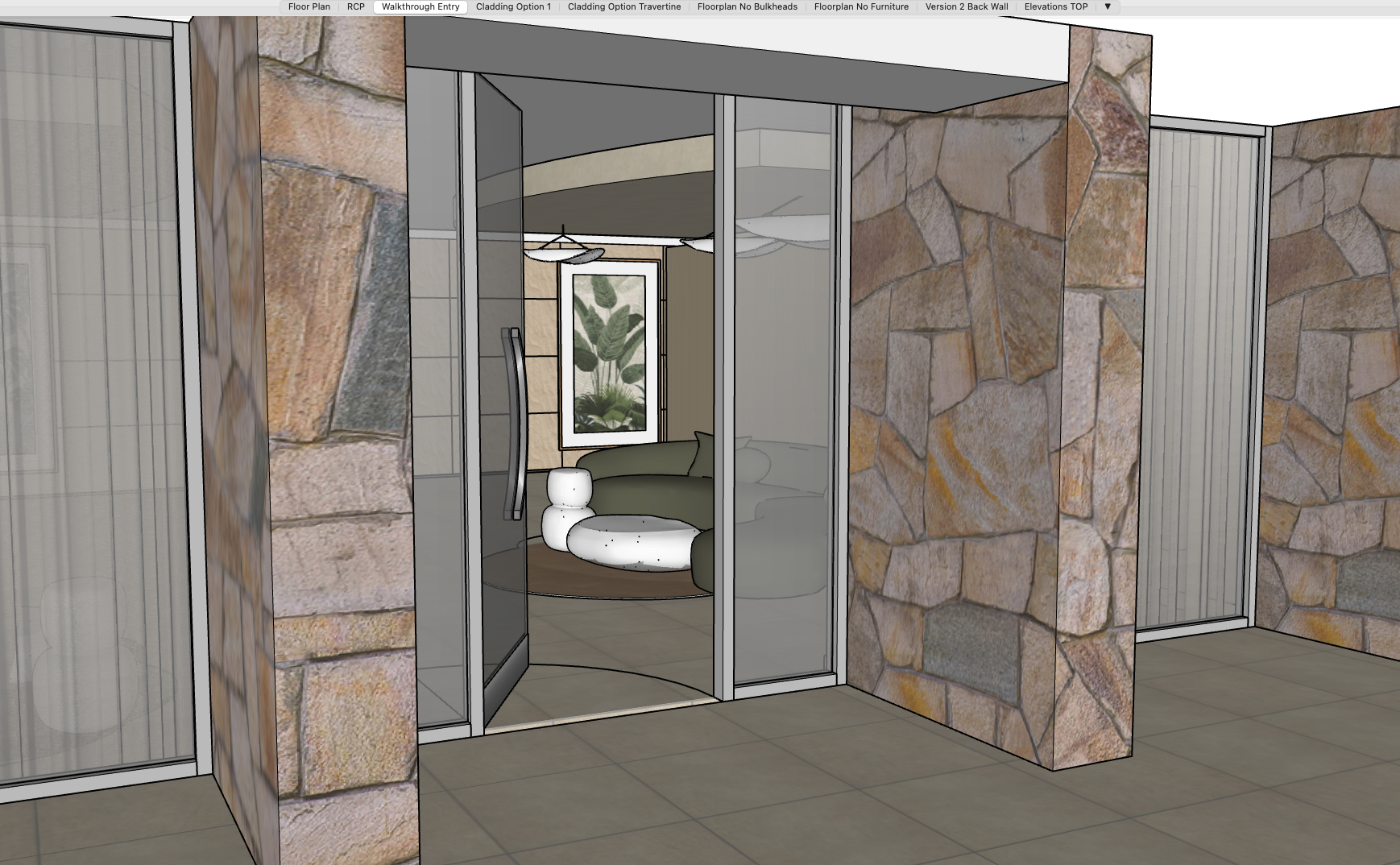 add photorealism while keeping your colors and materials unchanged add warm lighting creating a soft foyer atmosphere keep interior light and bright