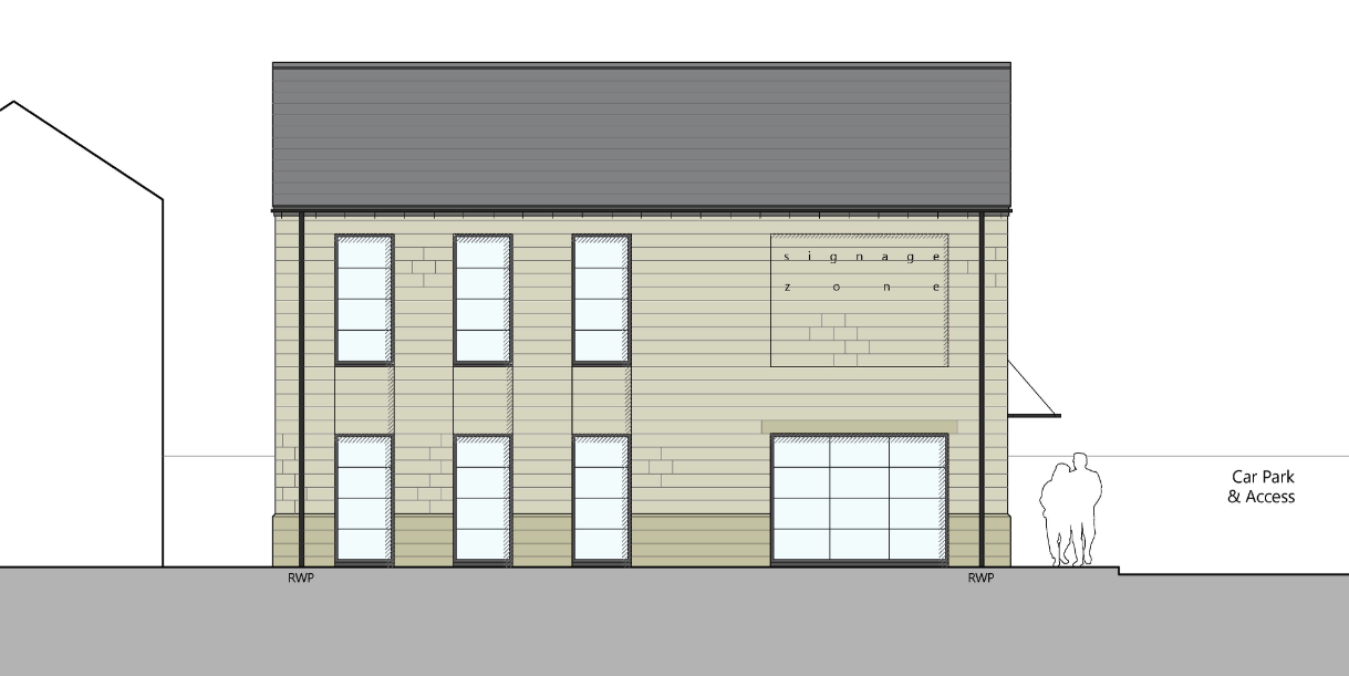 exterior shot ultra realistic 3d architectural render of a contemporary roadside retail development based on technical architectural drawings