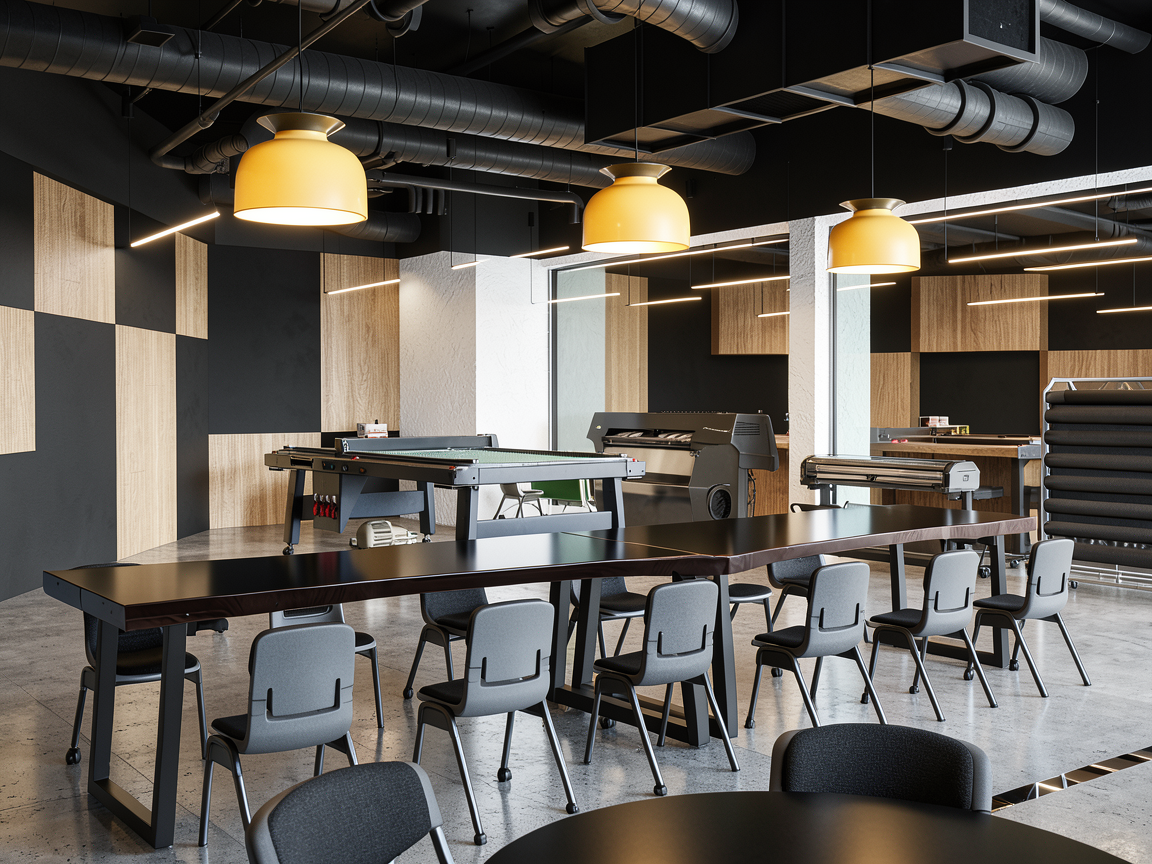 make the long wooden table wood grain more obvious make the mirror at the back into a window instead