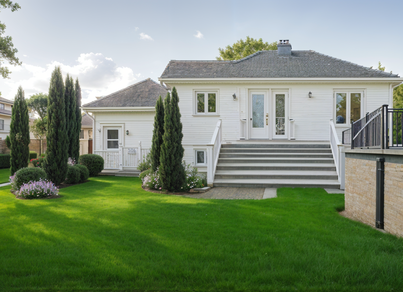 enhance the scene with have photorealistic materials and keeping the original colors the atmosphere should be serene and inviting with a bright blue sky filled with soft fluffy clouds