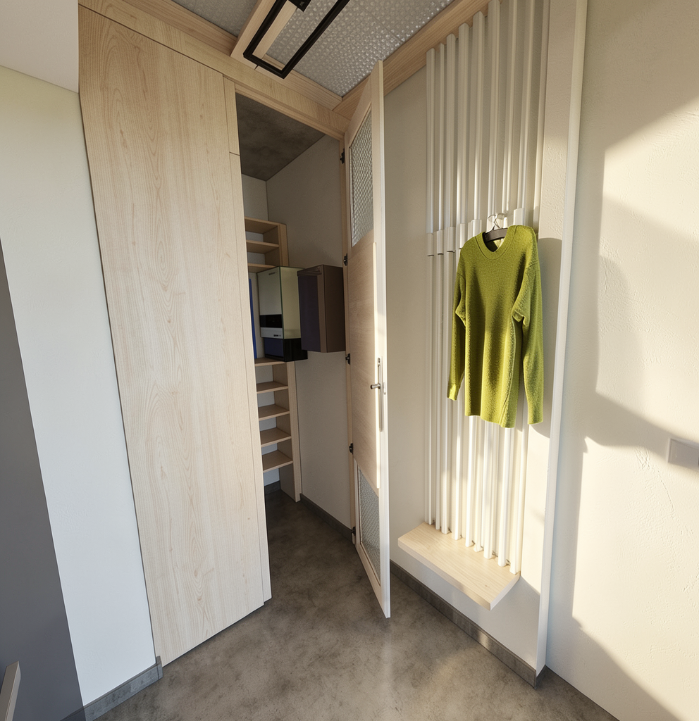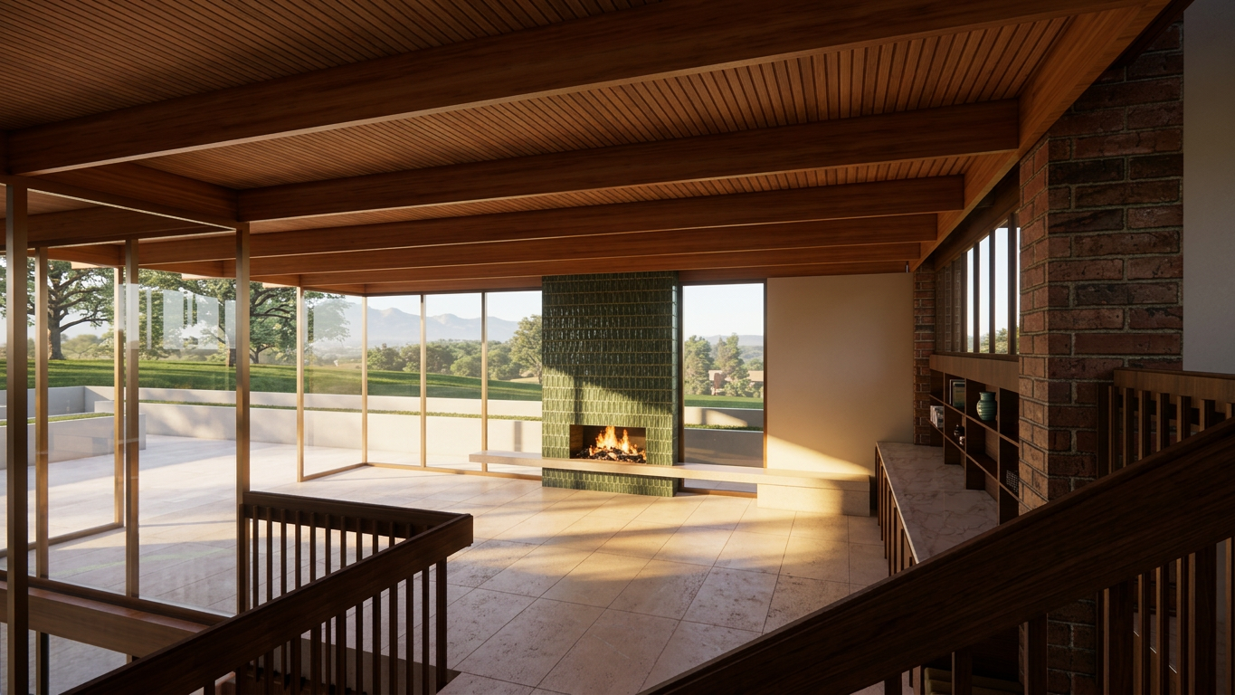ultra realistic kitchen rendering based on a sketchup model realistic cabinetry materials sw white flour painted range hood all other cabinetry in a dark walnut stain including the bar in the adjoining dining room crystallo quartzite countertops with subtle veining accurate texture scale white oak traditional 4 plank floors with a light to medium toned stain matte white painted walls and ceiling with slight texture single beam in the kitchen realistic fabric upholstery with visible weave rectangle windows overlooking a spacious yard physically accurate reflections and shadows soft indirect light global illumination professional interior photography crisp edges high detail clean modern aesthetic full frame camera 28mm lens