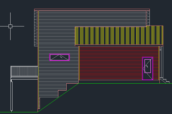 all windows are black for modern look the roof is a black steel roof the horizontal siding its a withe vinyle all facia and soffit are black the patio is in treated wood the structural frame is capped with black aluminium with 42 railling the land is walk out type from right to left house in a forest