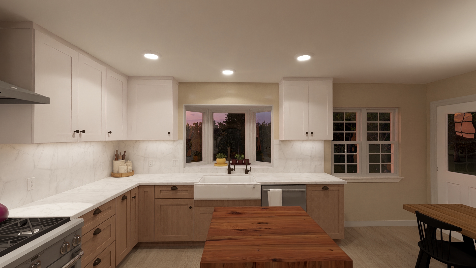 make the upper two cabinets on either side of the sink into 4 cabinets