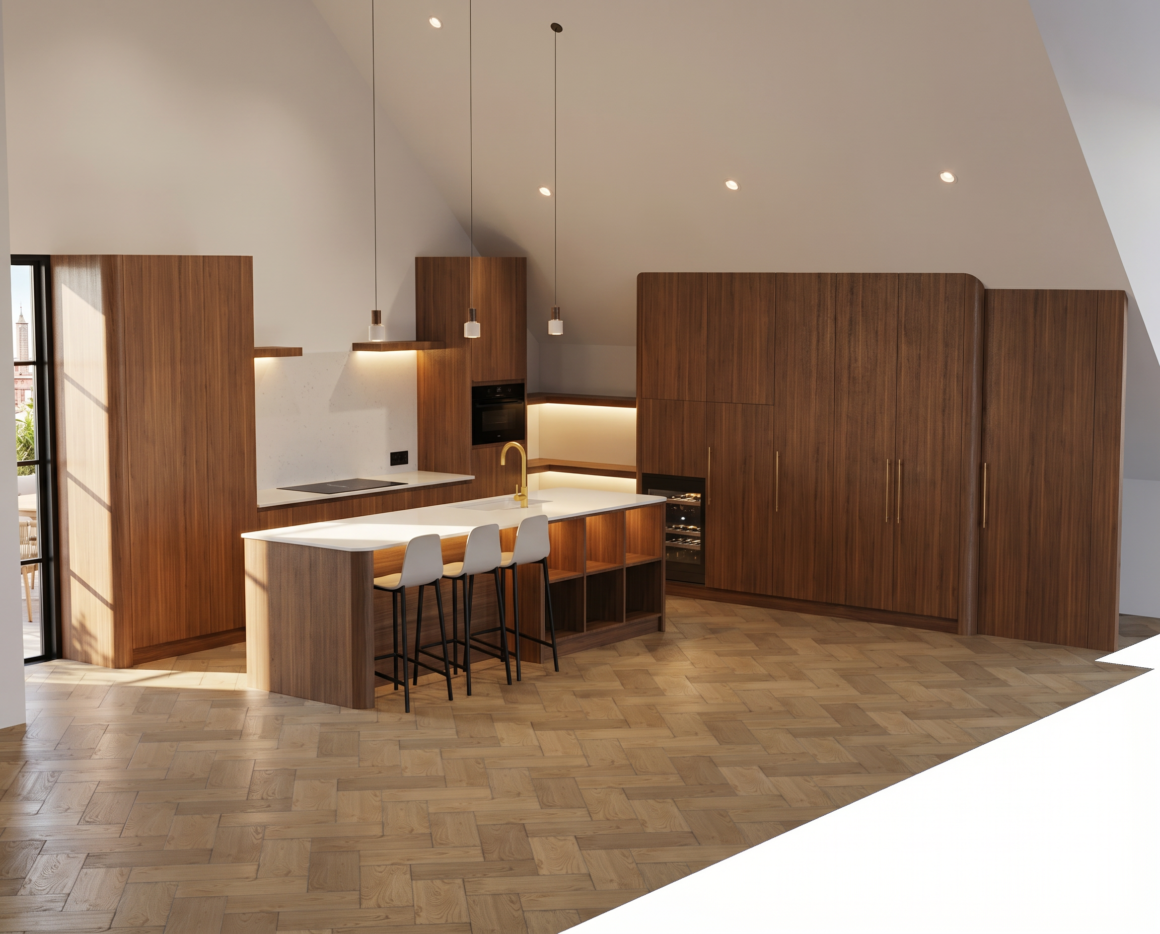 create a showroom space with square glass floor area the room on the right is open and a mock hotel room there are no windows
