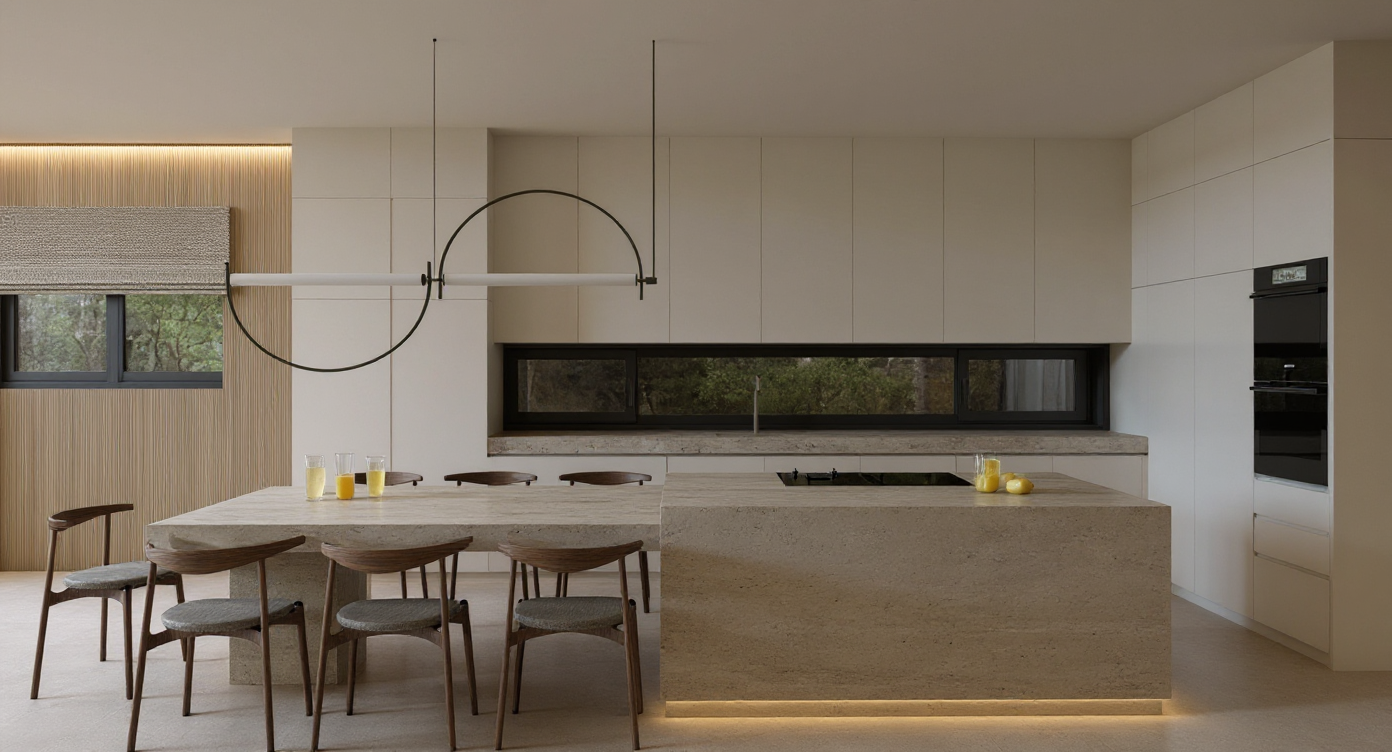 mediterranean landscape in the backgound lot of light and reflects in the windows add some mediterranean pine trees and olive trees more sun on the facade some palm trees