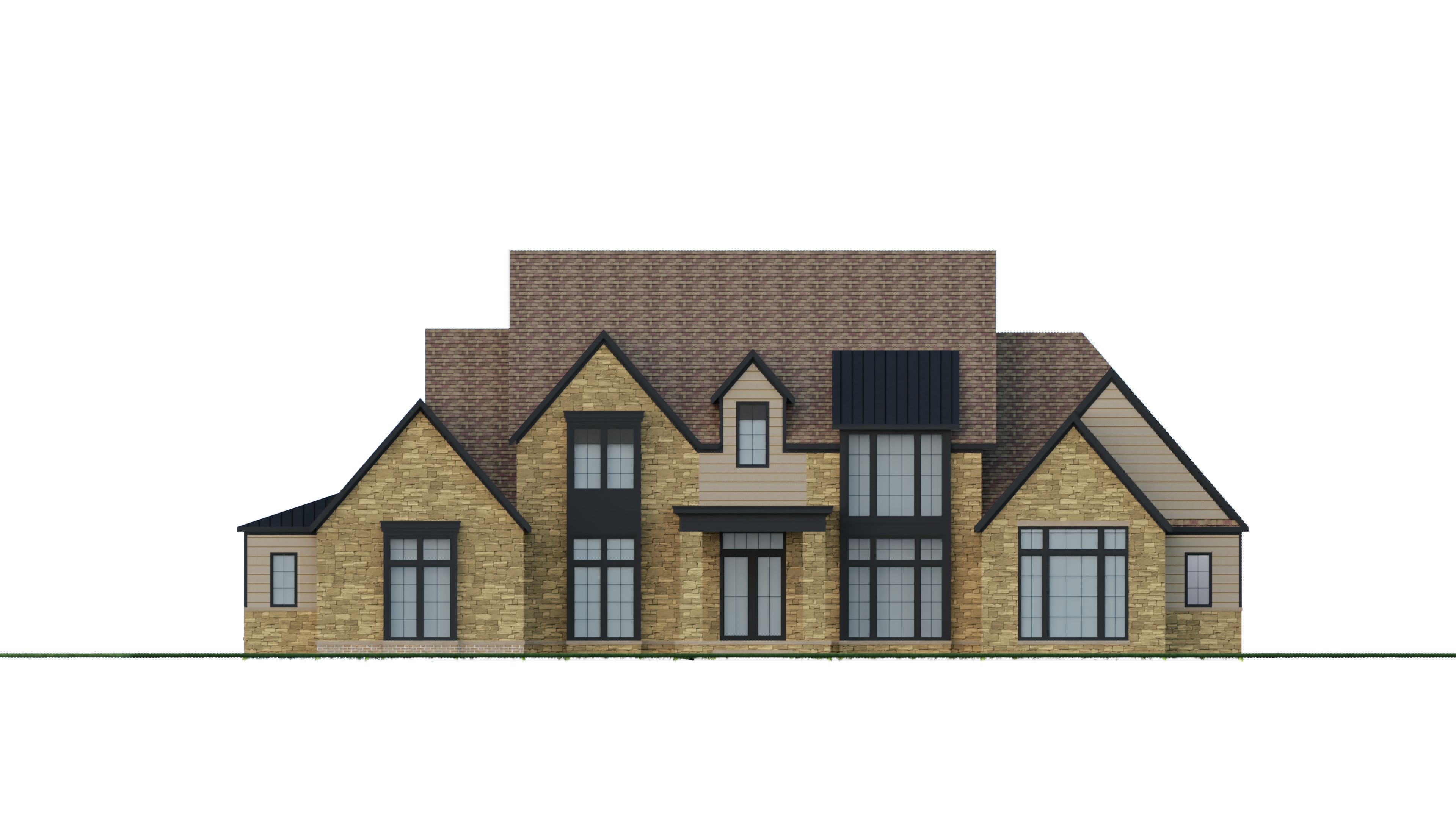 realistic manicured lawn sunset bright windows tall landscape wooded background