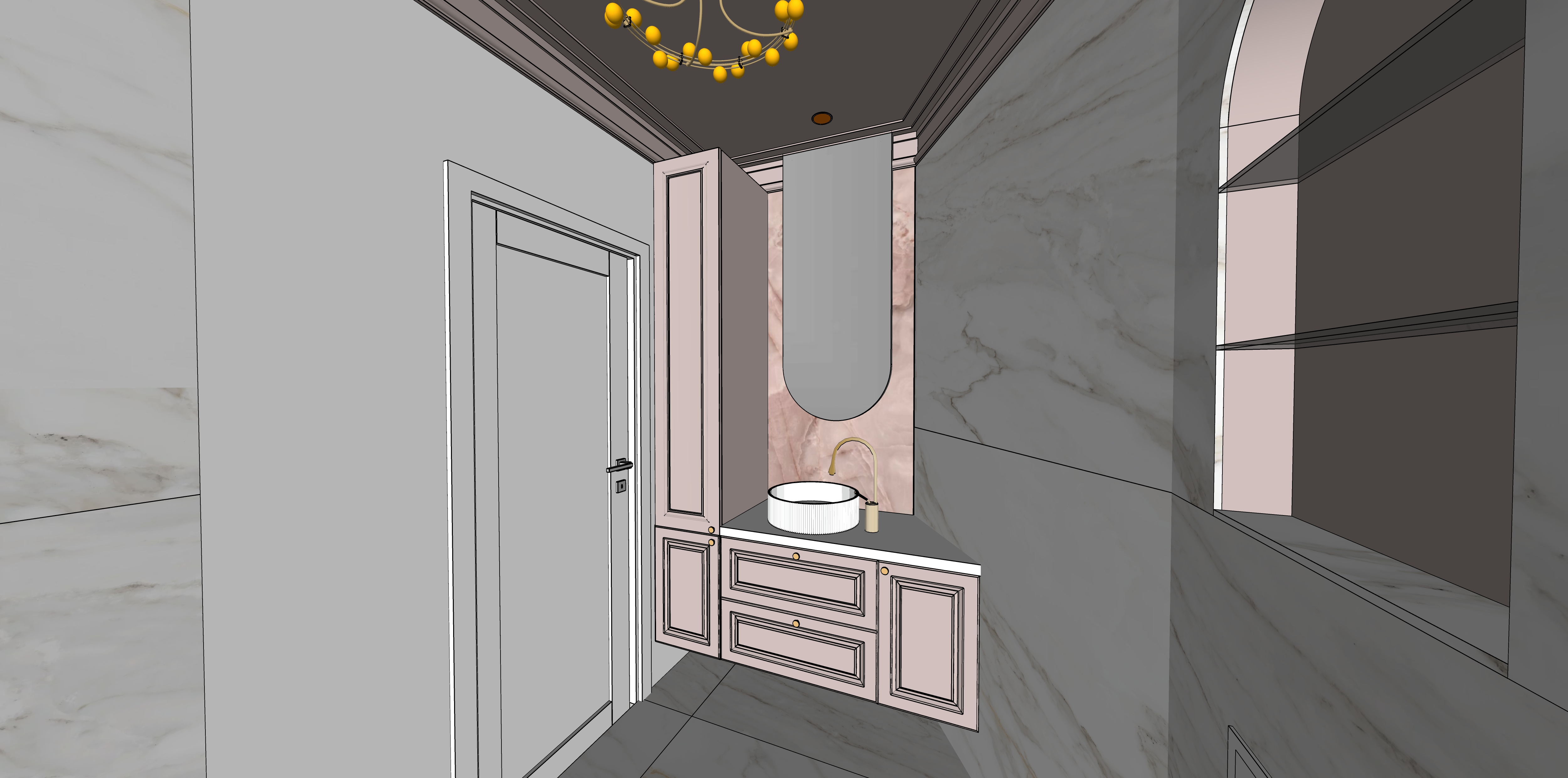 mirror above sink u shape with light behind keep colours of ceiling walls and tiles