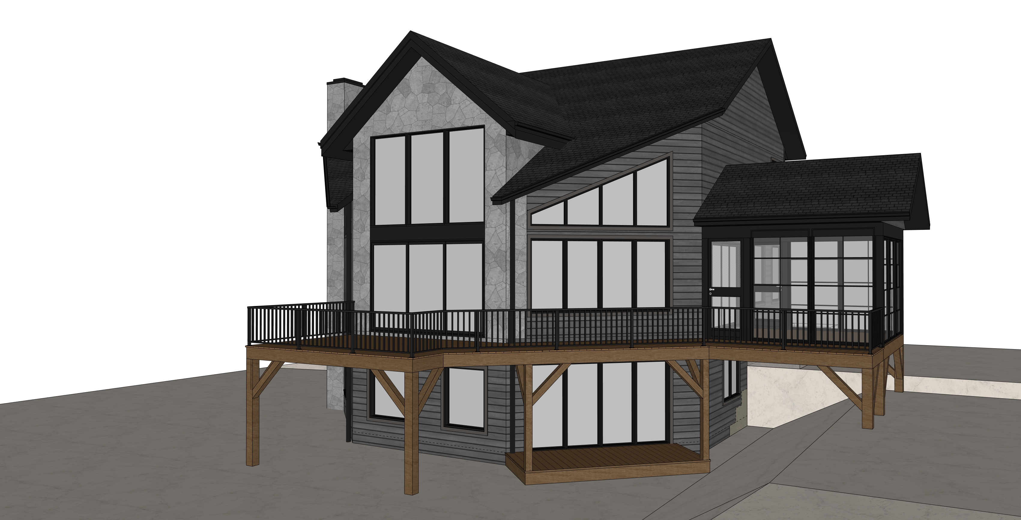 cabin is lakefront show some water on the far left side of image cabin is in the boreal forest but there are not too many trees surround ing it the ground is all canadian shield stone