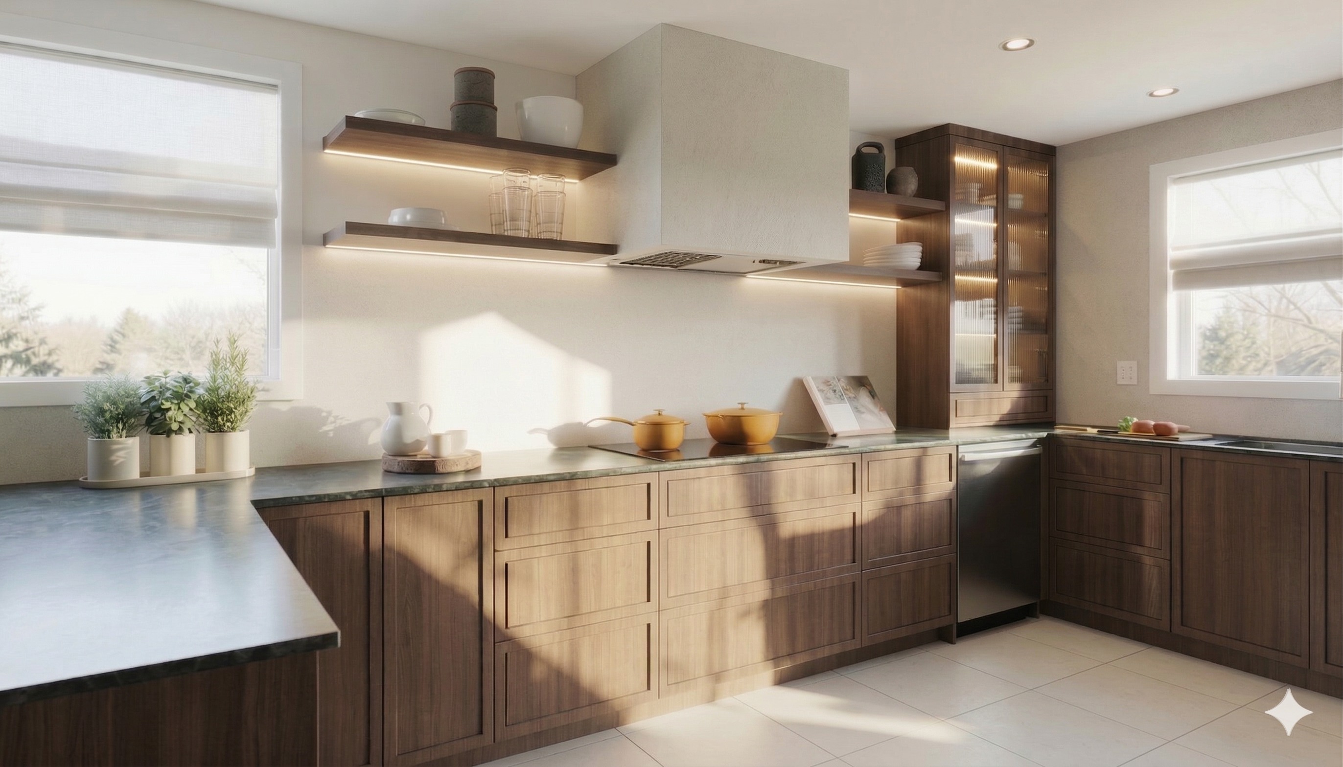 do not change the design dimensions and materials applied to the model just enhance the image to high quality remove the gemini watermark at the right bottom corner