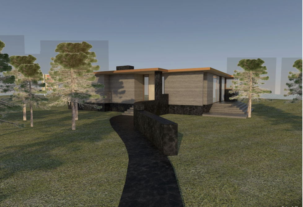 this is a house floor plan of an archipelago villa with rusty copper window frames and grass roof villa is by the rough nature and sea