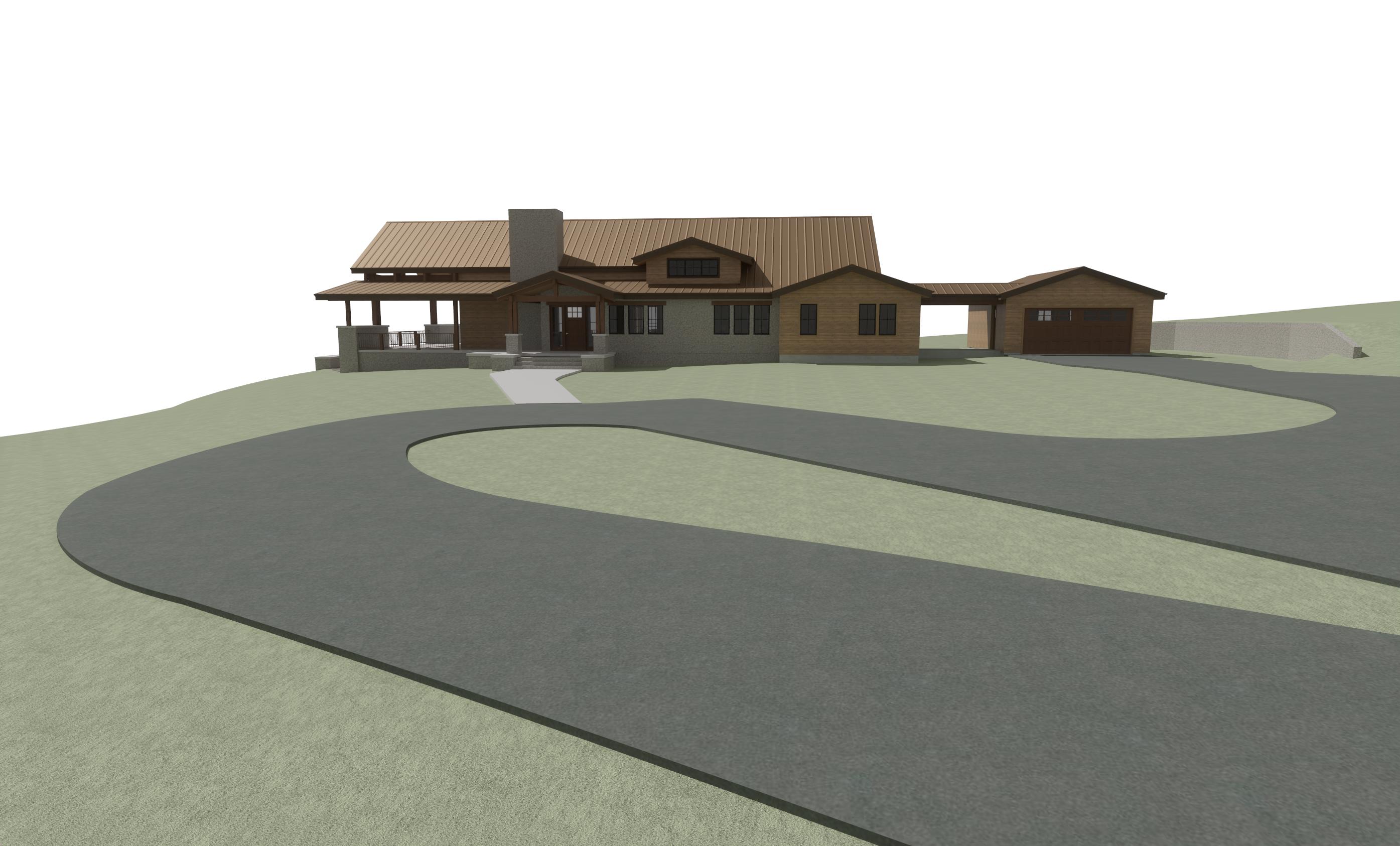 strict geometry lock prompt critical non negotiable geometry lock use the input image as a fixed reference the architecture must remain identical do not add remove or modify any elements do not change any windows or doors in any way do not replace resize move or redesign windows or doors do not add features such as fireplaces trim changes or new openings do not alter rooflines walls structure or proportions if unsure keep the original exactly as is the absolute most important thing is do not change the shape of the structure or window or door sizes the most important thing is to not change the size of the house in anyway create a realistic elevation of the architectural design maintaining the original materials of lap siding in their correct locations enhance the lighting and shadows for a lifelike effect but ensure that the texture and arrangement of both siding types remain exactly as in the original design make sure to keep the rock on the walls the same make wood siding ghost wood like jackson hole but leave the rock siding dont change the rock siding just make it more realistic keep lap siding horizantal do not make any siding vertical make the roof new metal copper roof this in montana use native montana trees and vegetation make golden hour outside show golden light coming from inside the absolute most important thing is do not change the shape of the structure or window or door sizes the most important thing is to not change the size of the house in anyway there is rock slab patio on the left make small mountain far off in distance to the left the background is and open field with montana trees far off in distance the hill on the right slopes up slightly the hill on the left slopes down also dont change corbels or timbers again the most important thing is to not change the building shape windows or doors keep the same shape dont change lines in windows or doors the height distance from the lower patios to the deck are exact dont change dont add a basement