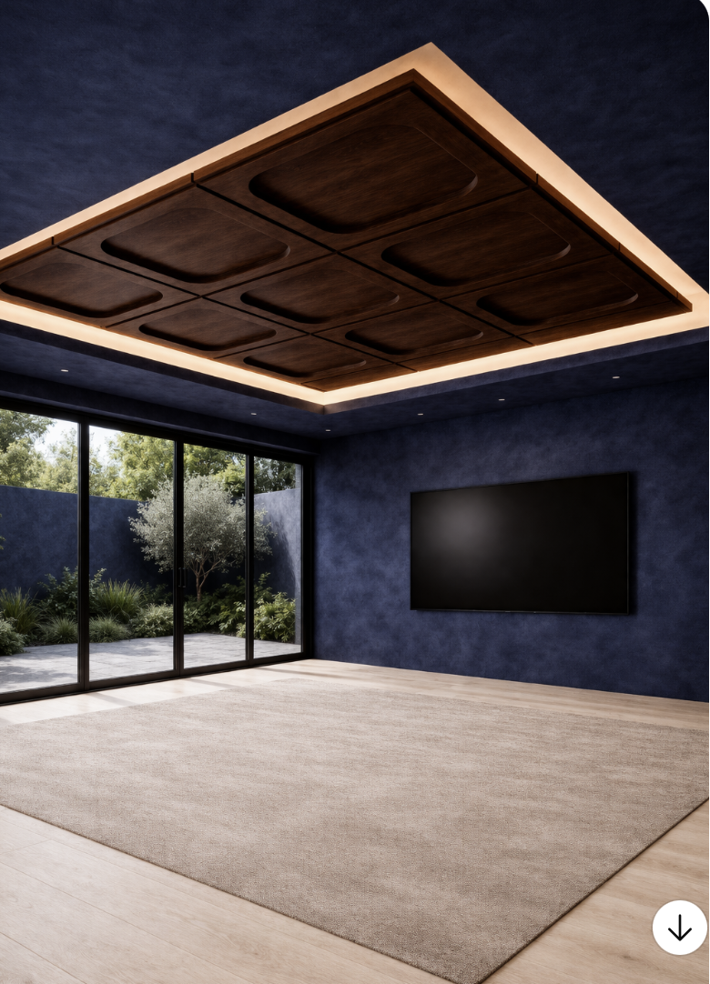 create a photo realistic image and change the wood color on the ceiling to the same wood color of the floor