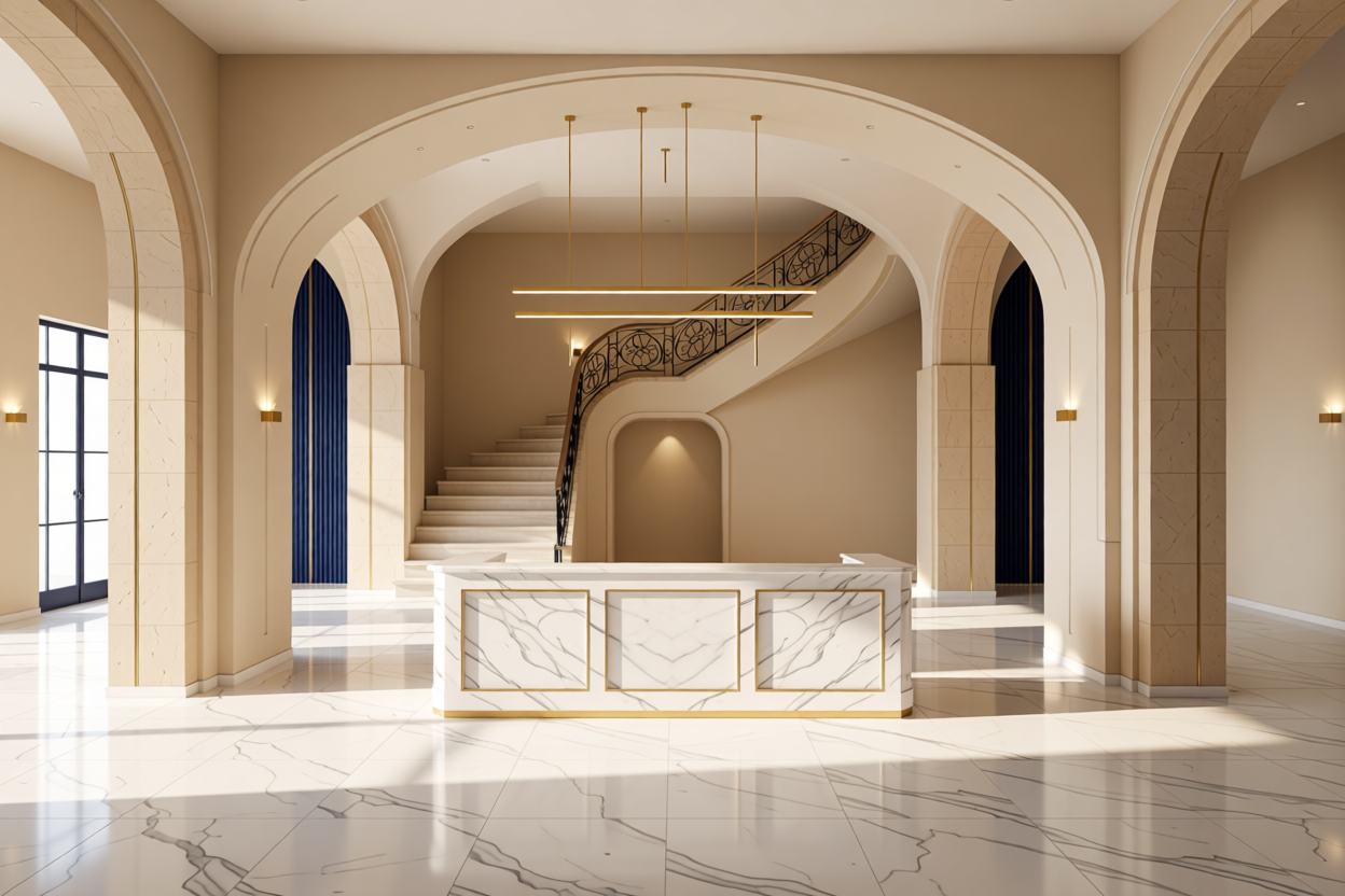 get rid of name on the wall with arch don t add any new displays just enhance where merchandise already is in image