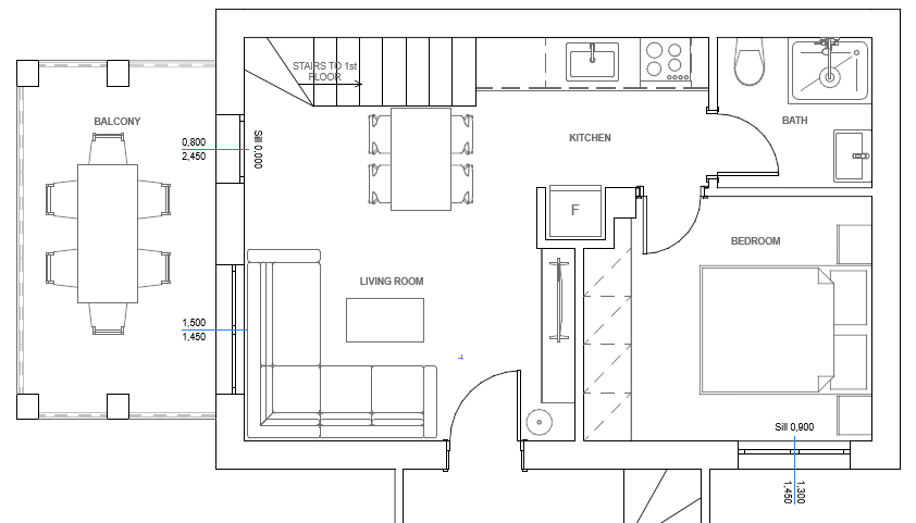 scandinavian style grey tiles in all the floors and in the bathroom grey tiles in the balcony wooden stairs shower with glass cabine glass railling in the balcony glass railling in the stairs balcony door next to the sofa white windows