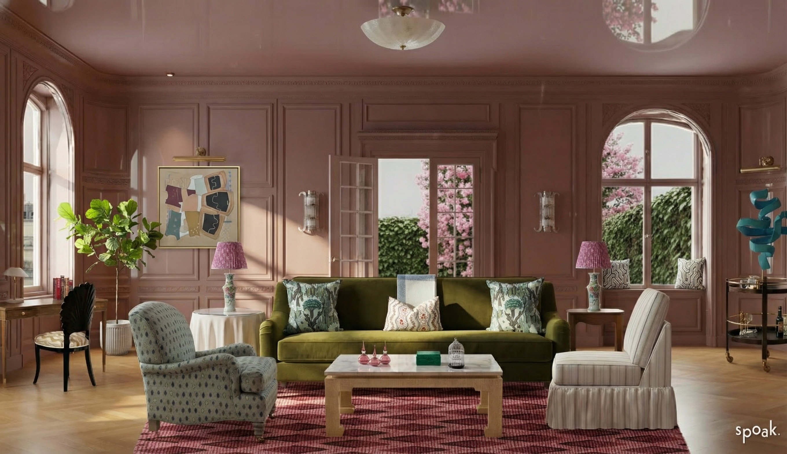 remove ceiling fixture in rendering and replace with this one https www visualcomfort com brenta grande chandelier arn5472 2461 35811 change nothing else
