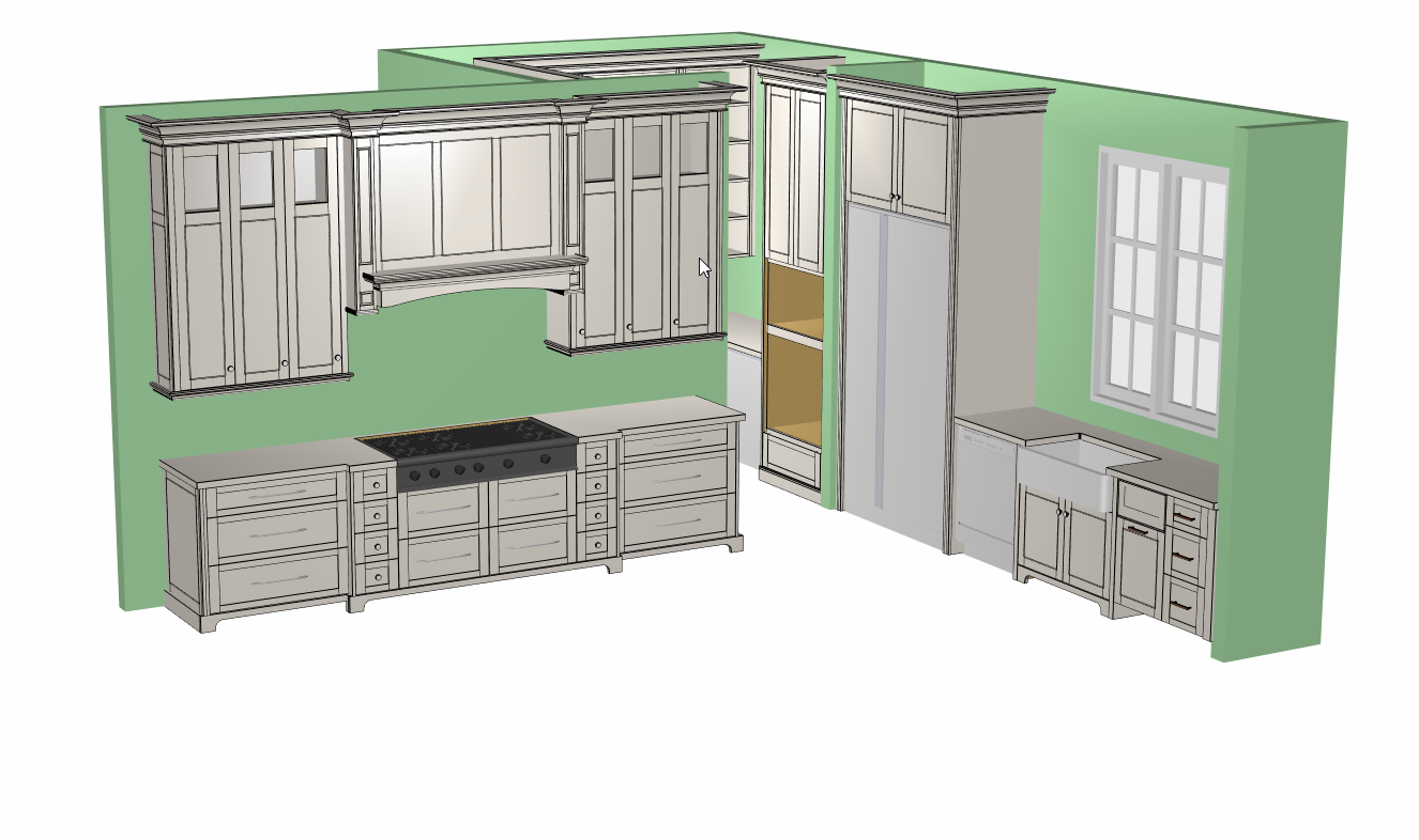 white cabinetry with medium stain island refrigerator is stainless