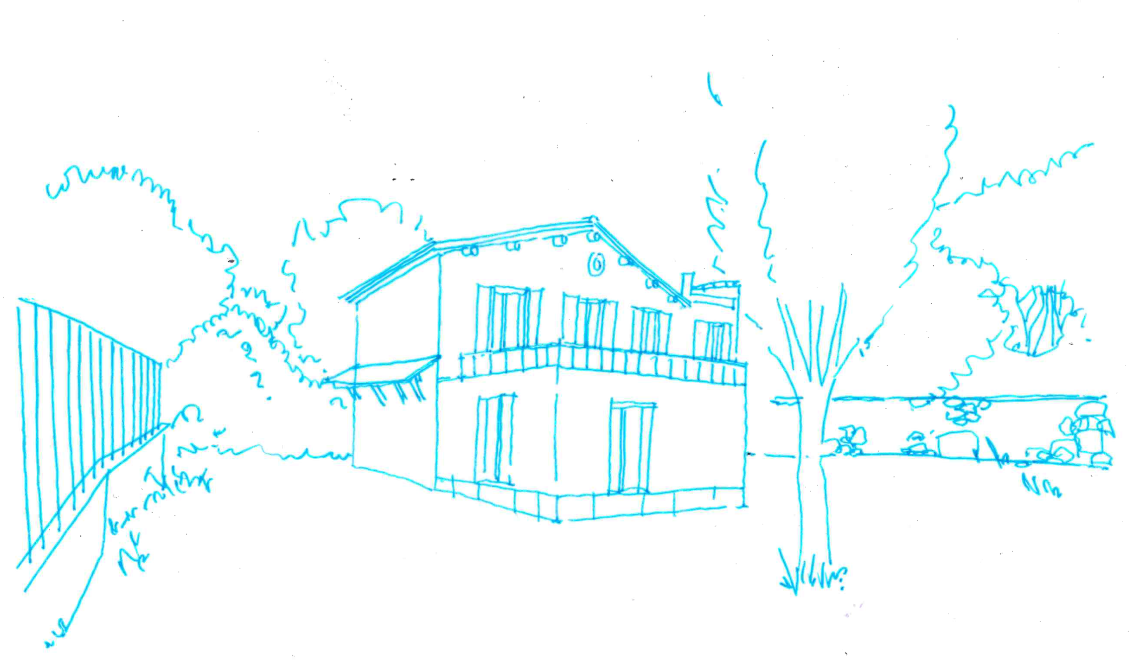 super realistic view from a house in marseille with light yellow walls blue shutters