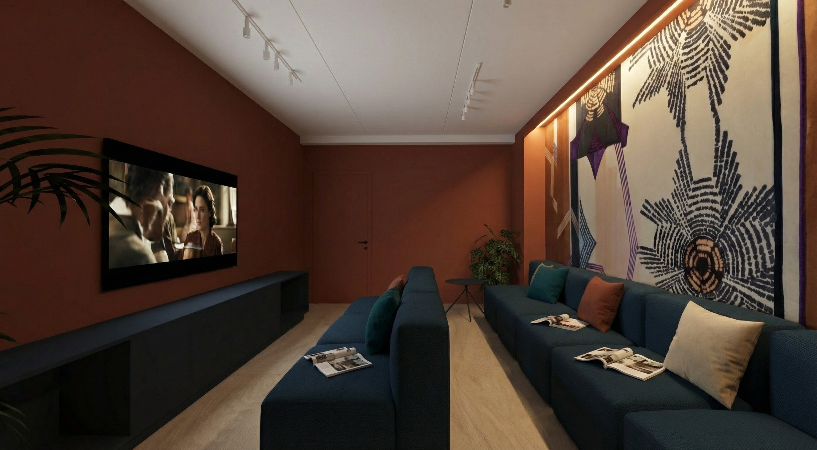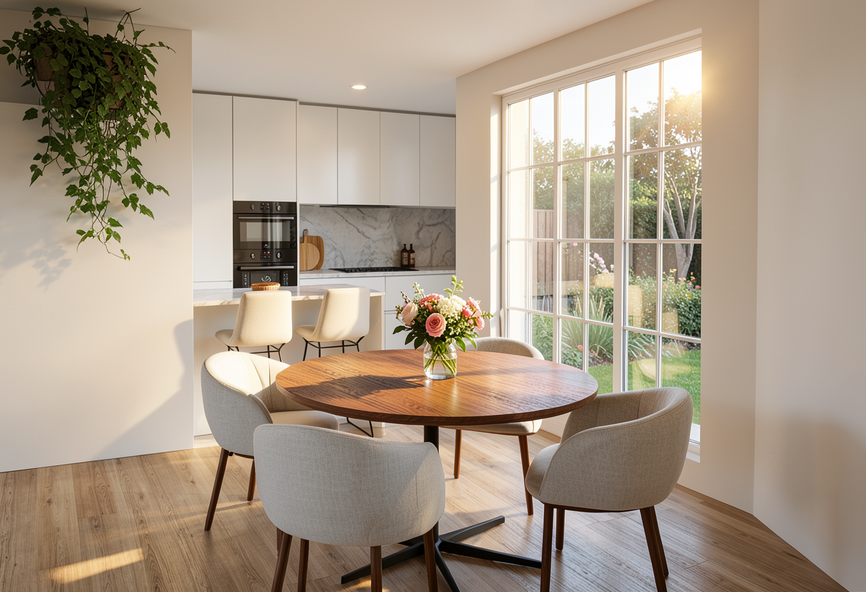 enhance the existing interior visualization by adding natural realistic light reflections and subtle highlights improve photorealism through accurate lighting soft shadows and gentle light gradients maintain all original colors textures materials furniture decor and their exact placement do not alter the composition design or geometry of the scene focus solely on realistic light behavior depth and atmosphere as in a professionally photographed interior