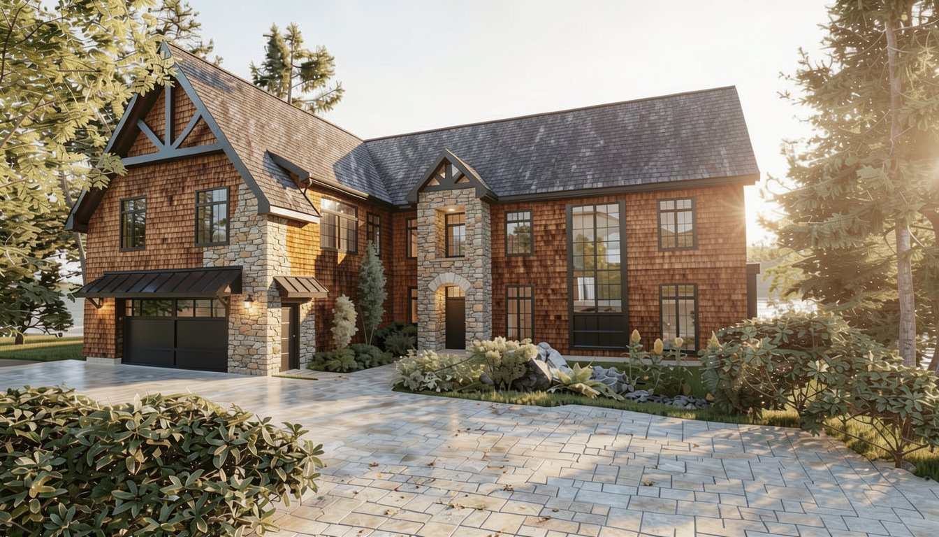 change siding to medium grey cedar shingles